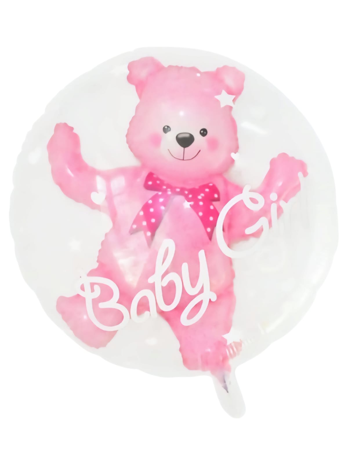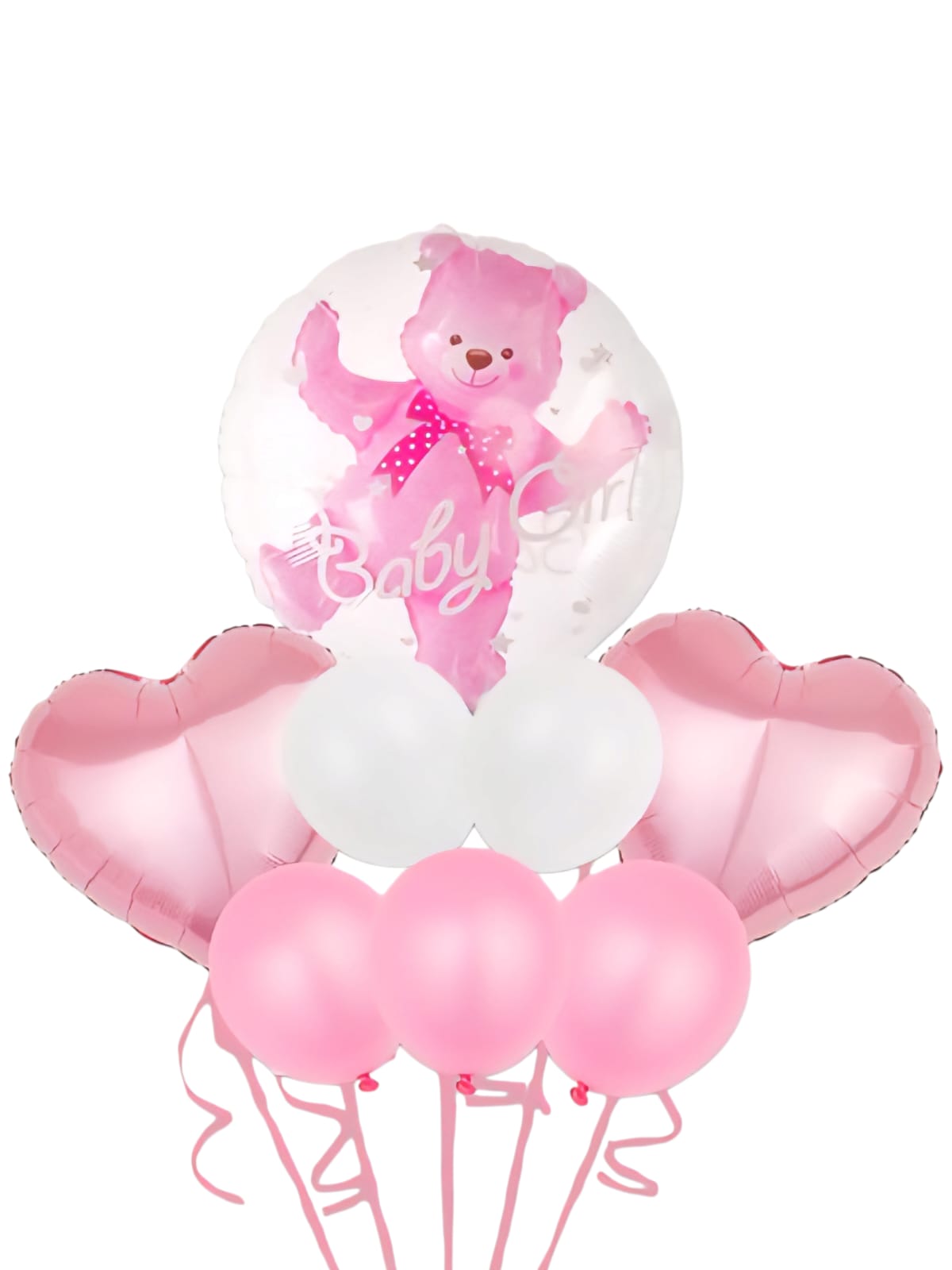 Baloane decorative, tip Aniversare, model Ursulet, Set 8 baloane, Roz