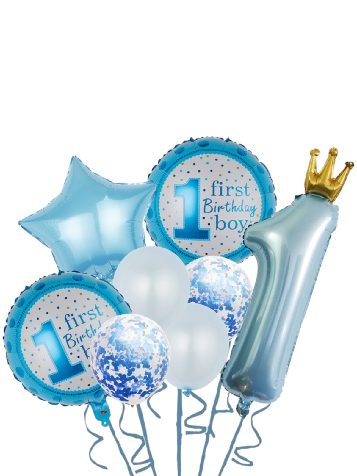 Baloane decorative, tip Prima Aniversare, model It's a boy, Set 8 baloane, Albastru