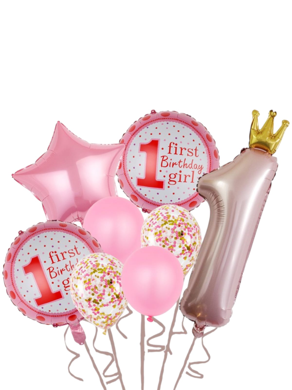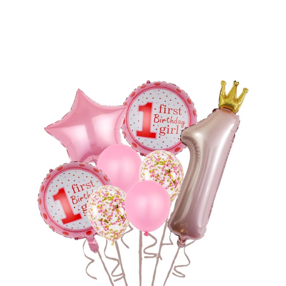 Baloane decorative, tip Prima Aniversare, model It's a girl, Set 8 baloane, Roz