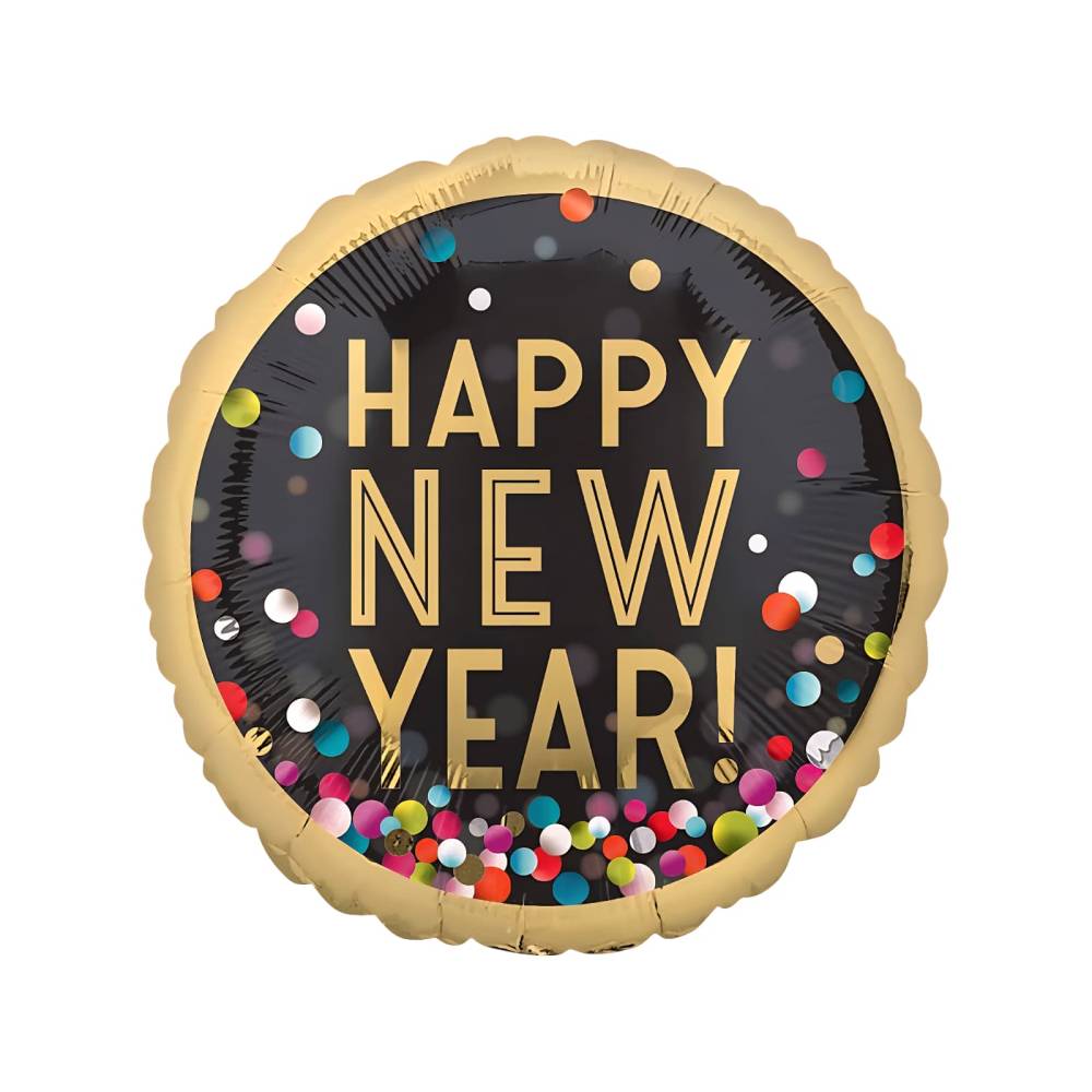 Baloane din folie metalizata, model Happy New Year, set 9 bucati, umflare aer sau heliu, Negru