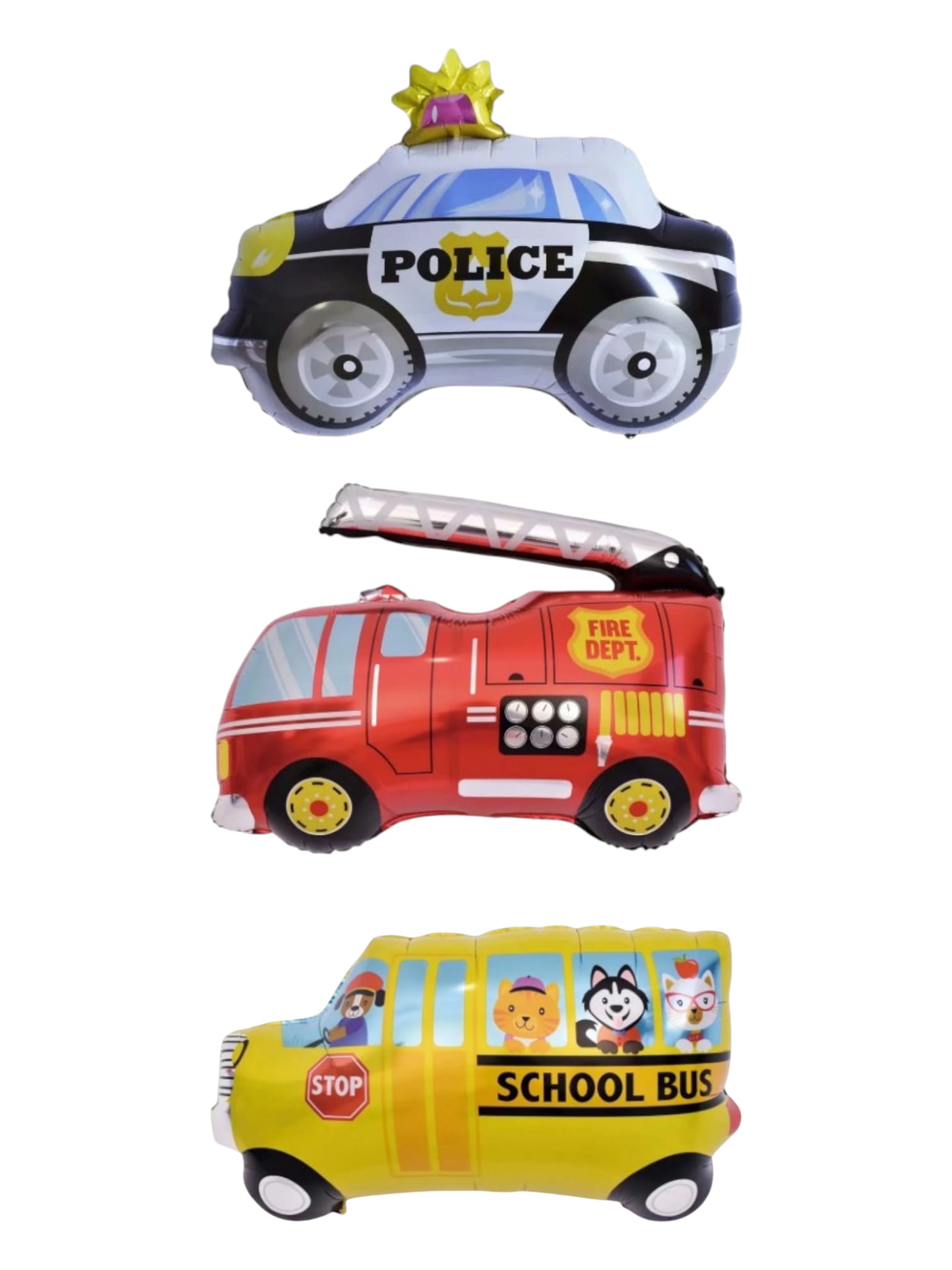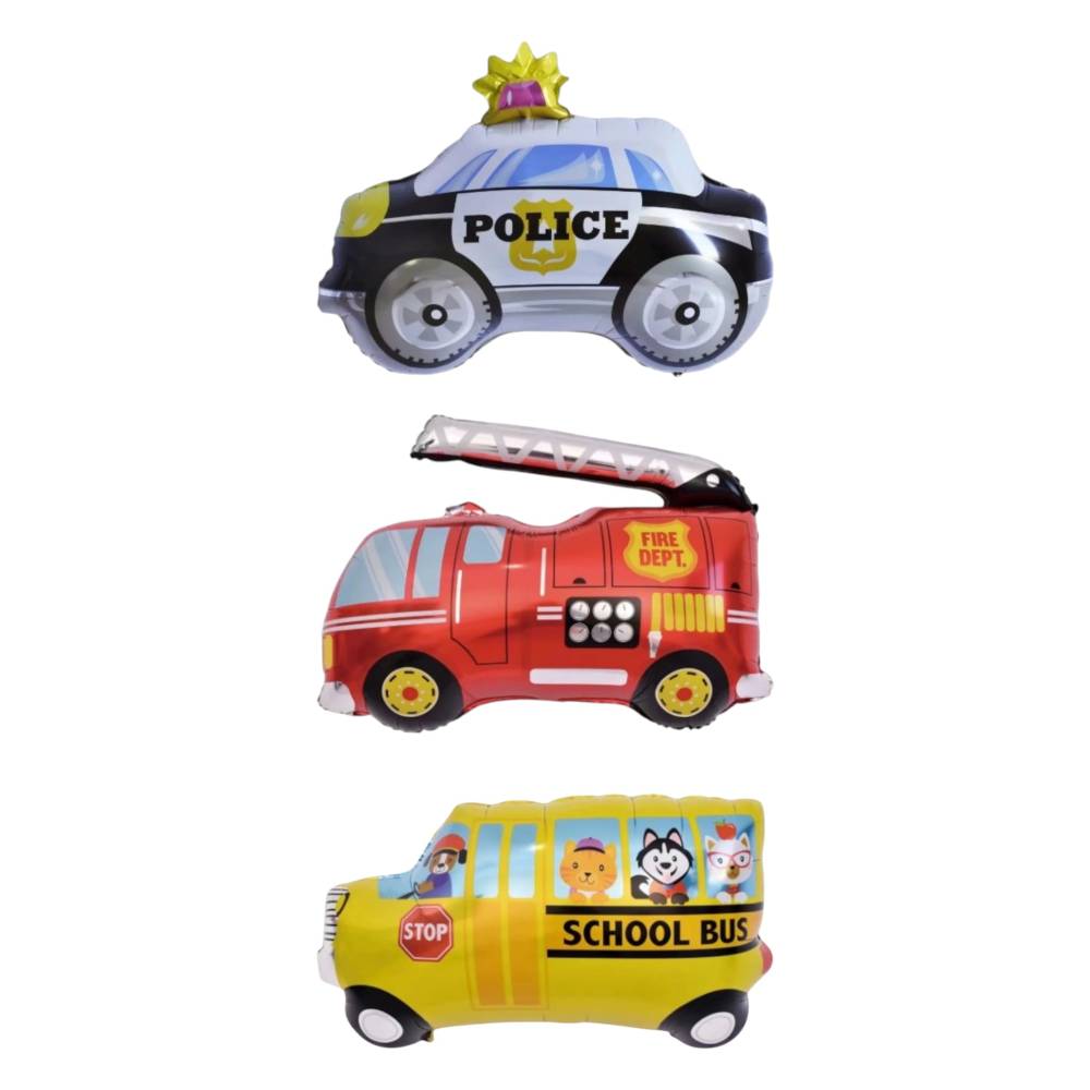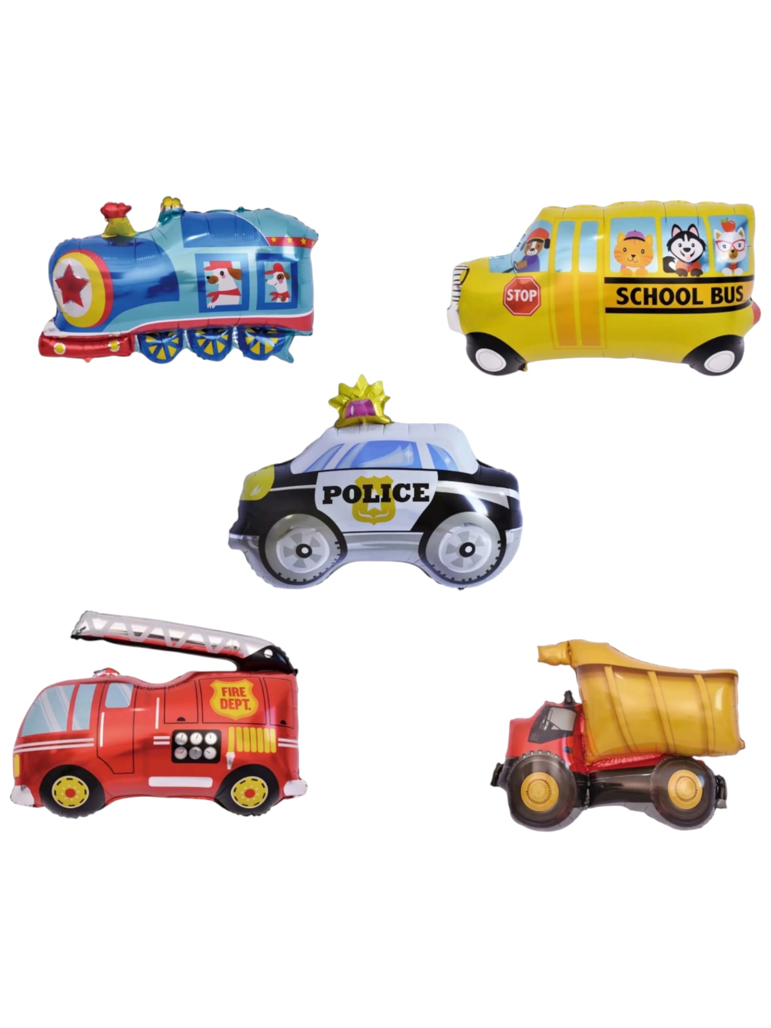 Baloane din folie metalizata, model Masini, set 5 bucati, umflare aer sau heliu, Multicolor