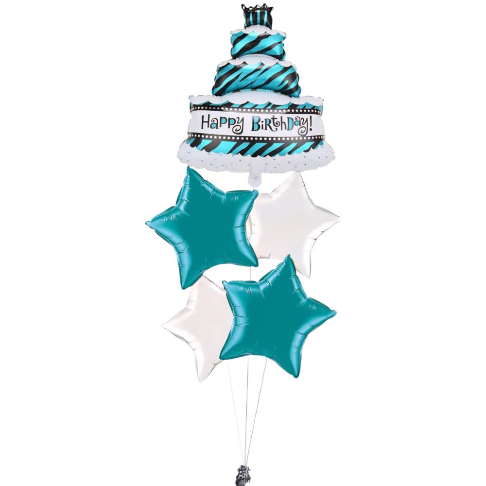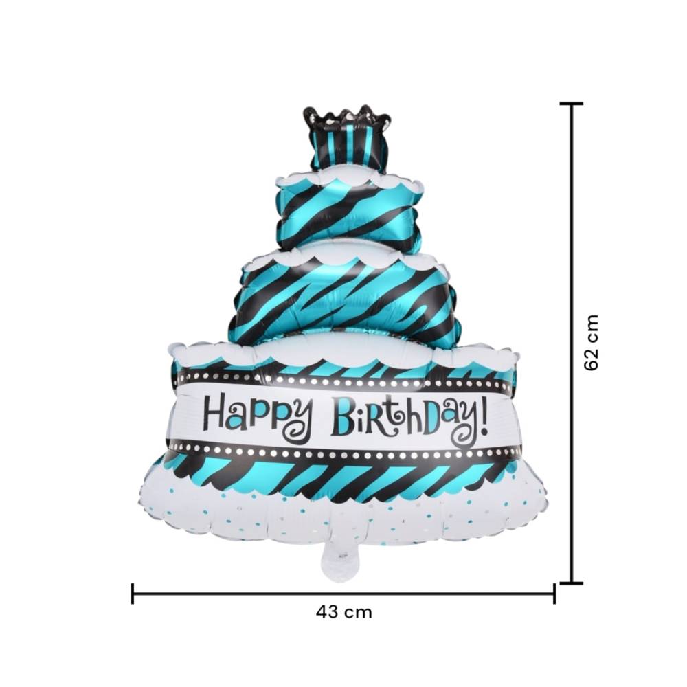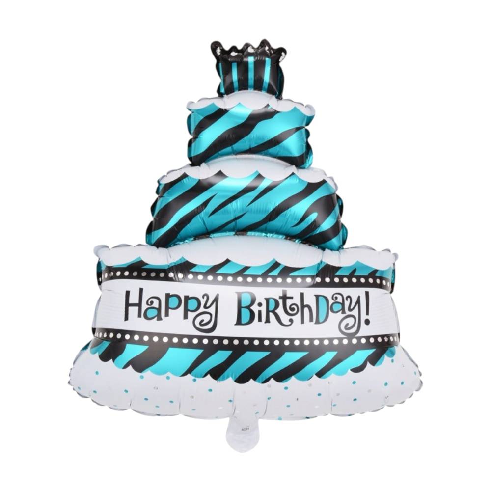 Balon din folie metalizata, model Tort, umflare aer sau heliu, Albastru