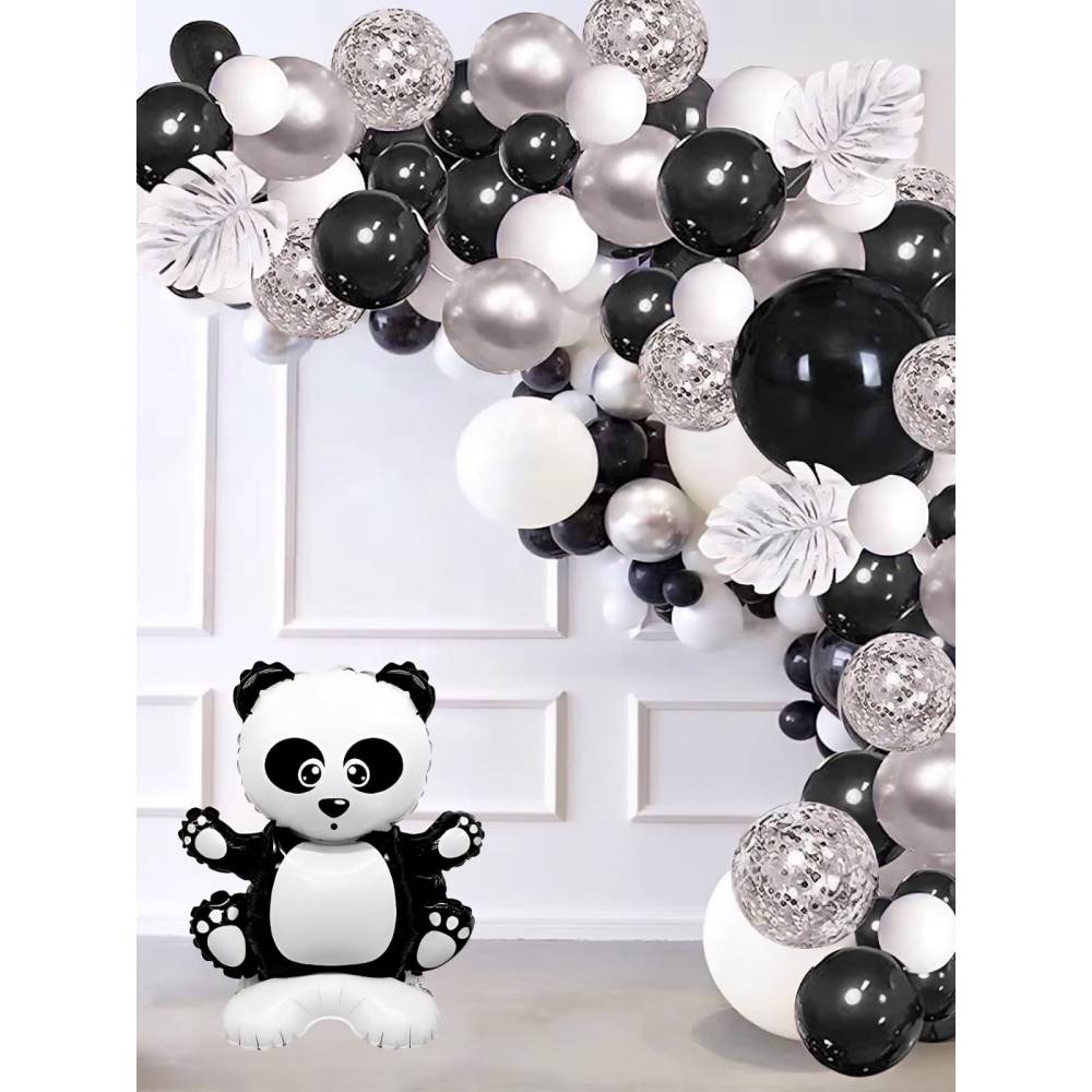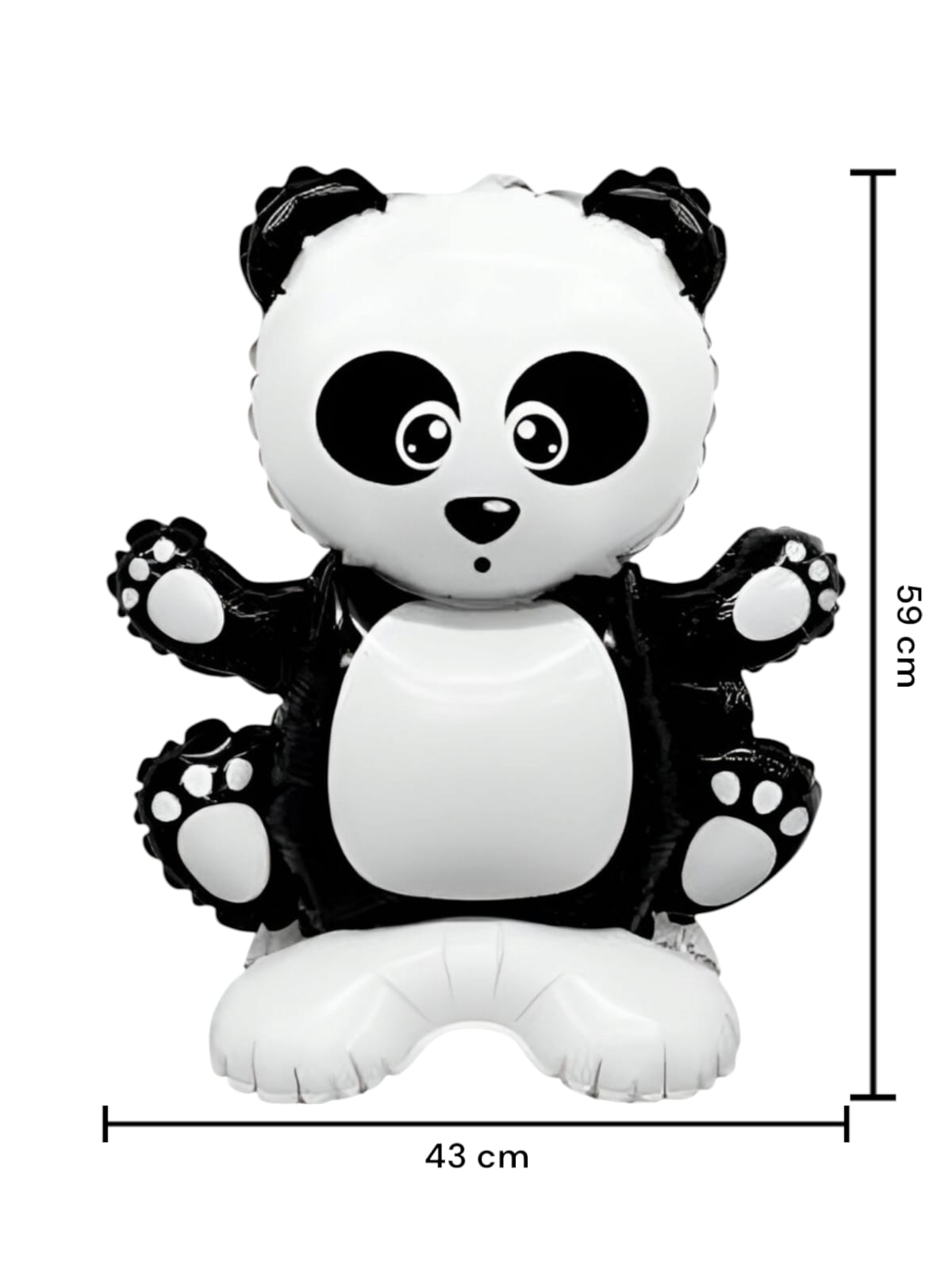 Balon din folie metalizata, model Urs Panda, umflare aer sau heliu, Alb/Negru