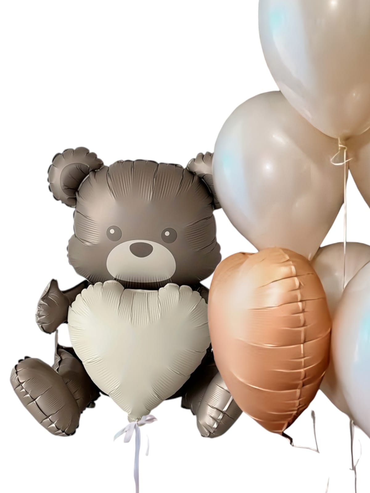 Balon din folie metalizata, model Ursulet, umflare aer sau heliu, Maro