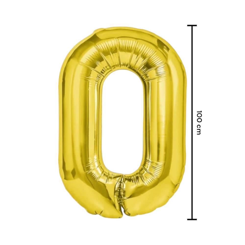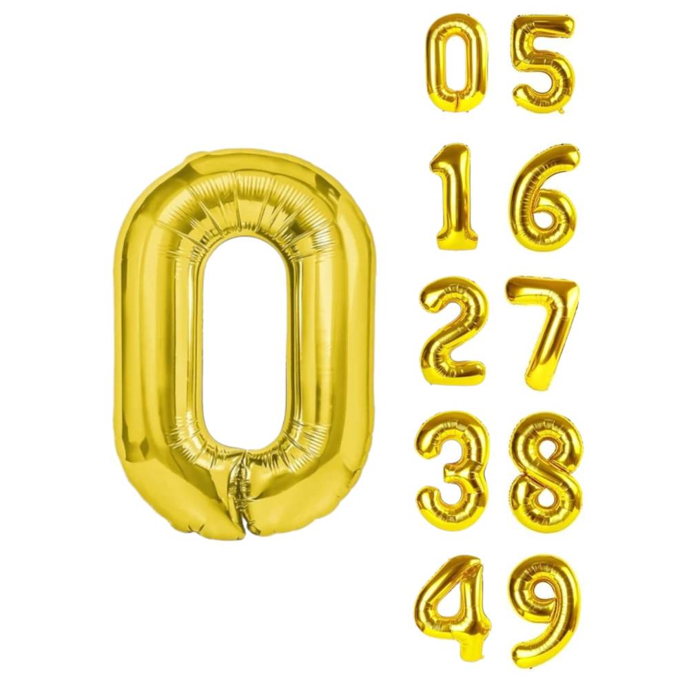 Balon din folie metalizata, tip cifra, 100 cm, umflare aer sau heliu, pai inclus, Auriu