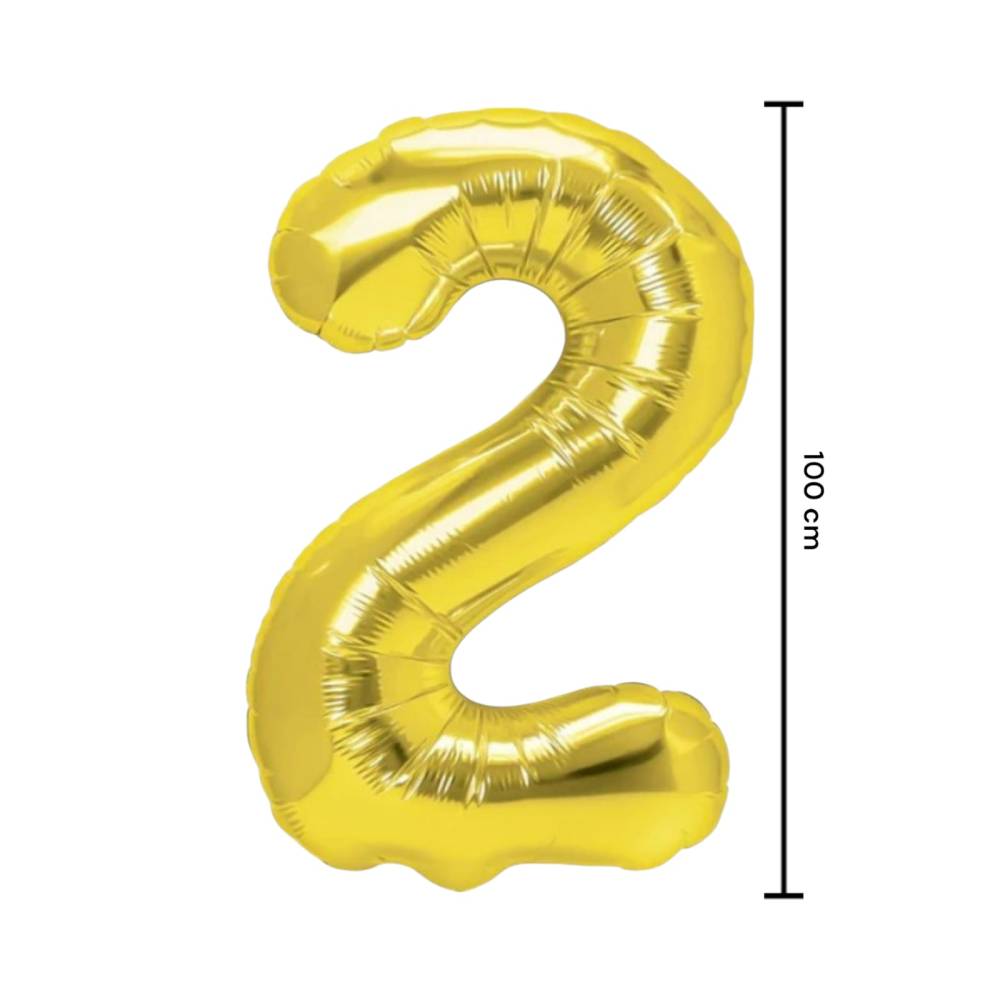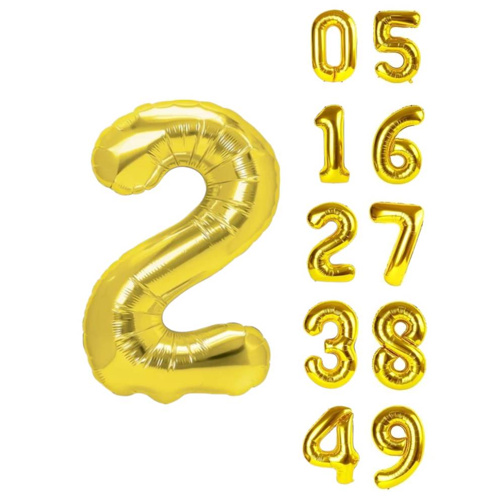 Balon din folie metalizata, tip cifra, 100 cm, umflare aer sau heliu, pai inclus, Auriu
