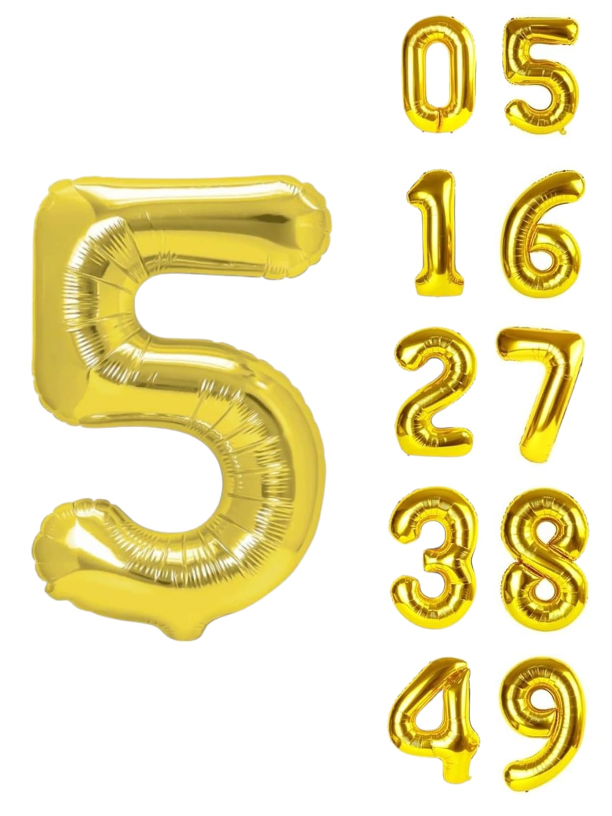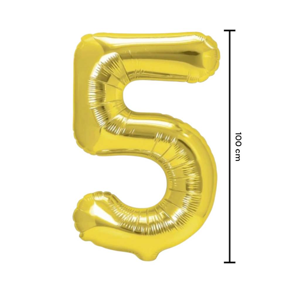Balon din folie metalizata, tip cifra, 100 cm, umflare aer sau heliu, pai inclus, Auriu
