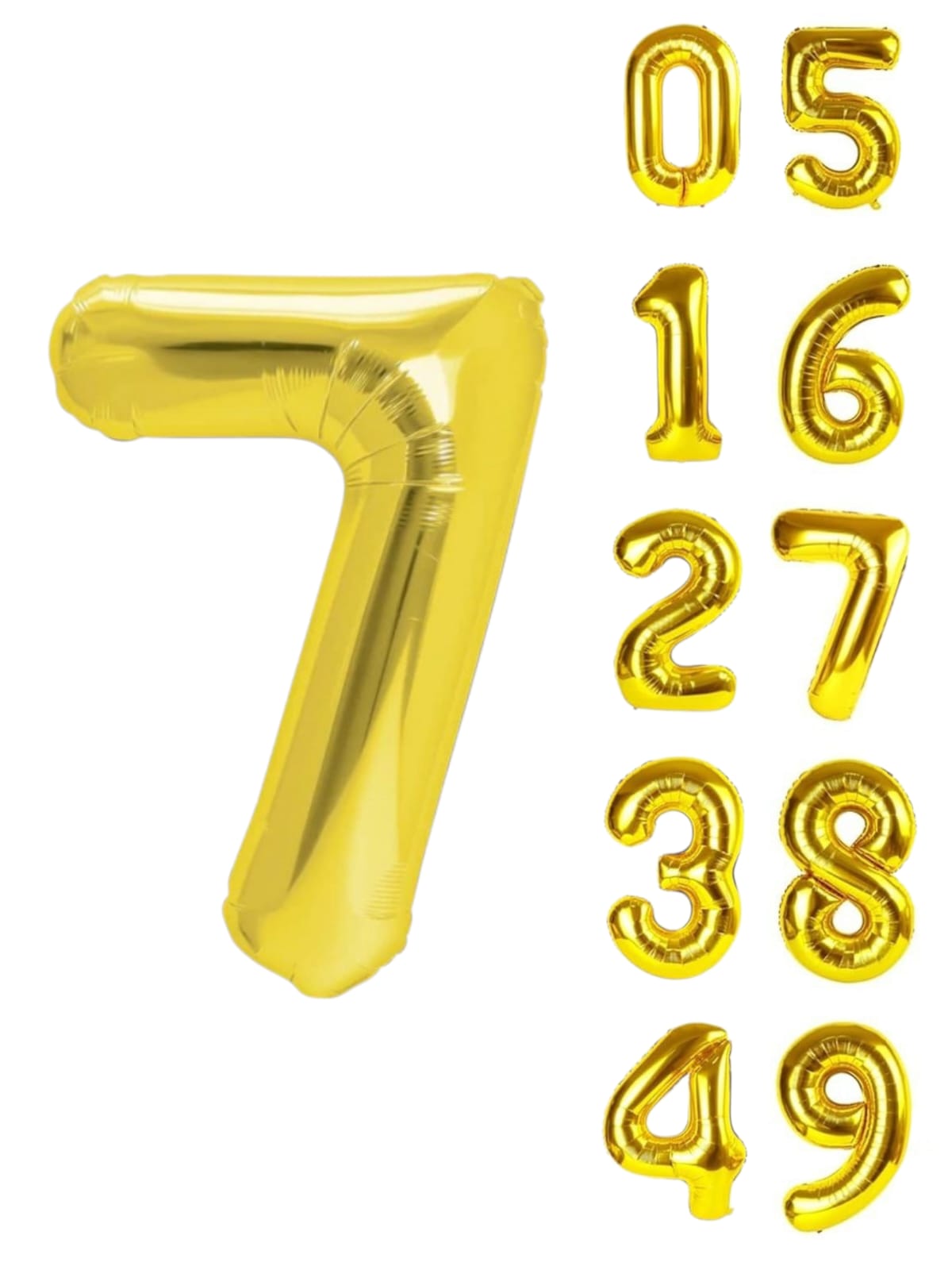 Balon din folie metalizata, tip cifra, 100 cm, umflare aer sau heliu, pai inclus, Auriu