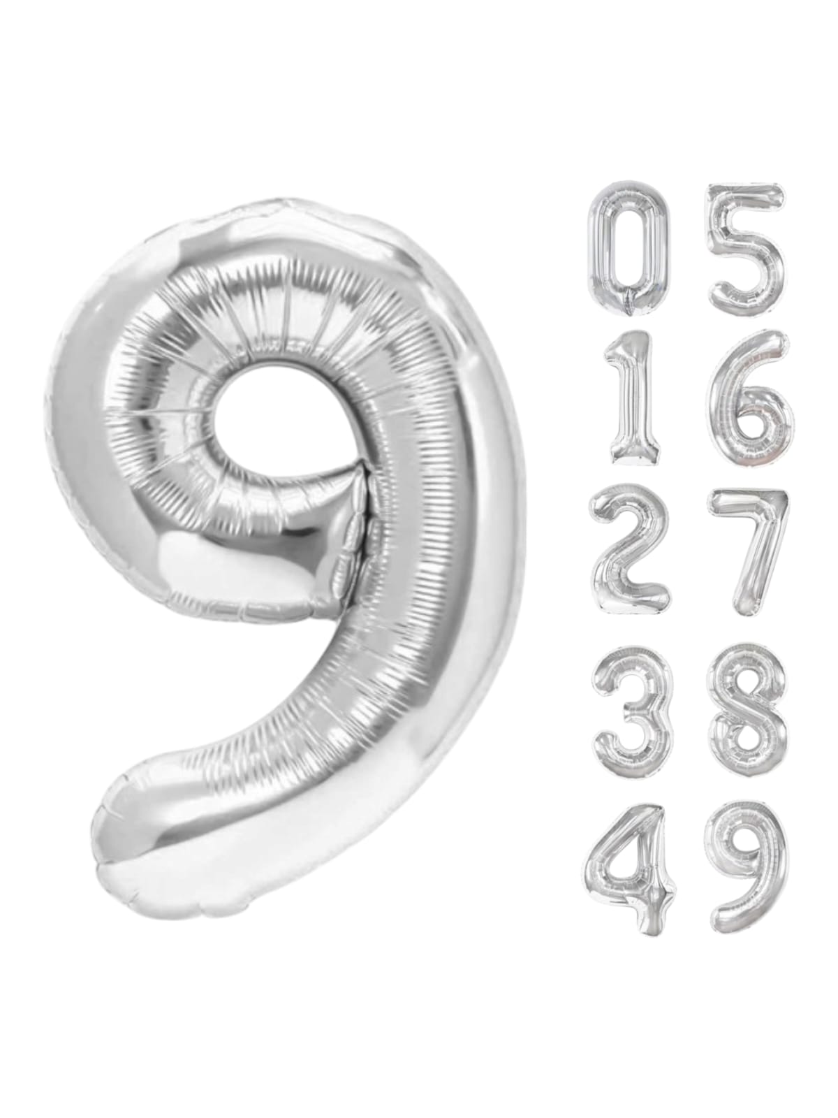 Balon din folie metalizata, tip cifra, 80 cm, umflare aer sau heliu, pai inclus, Argintiu