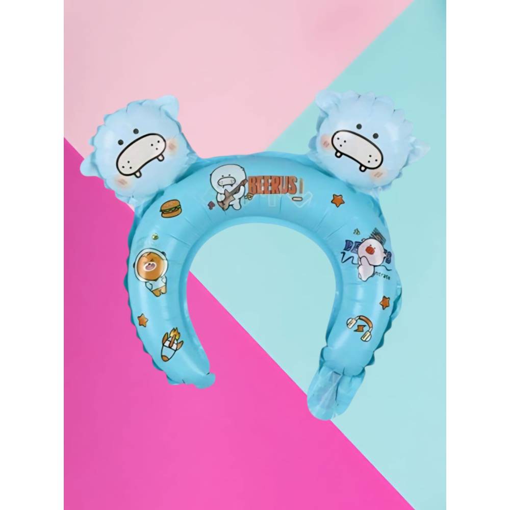 Balon din folie metalizata, tip coronita, model Ursuleti, umflare aer sau heliu, Albastru