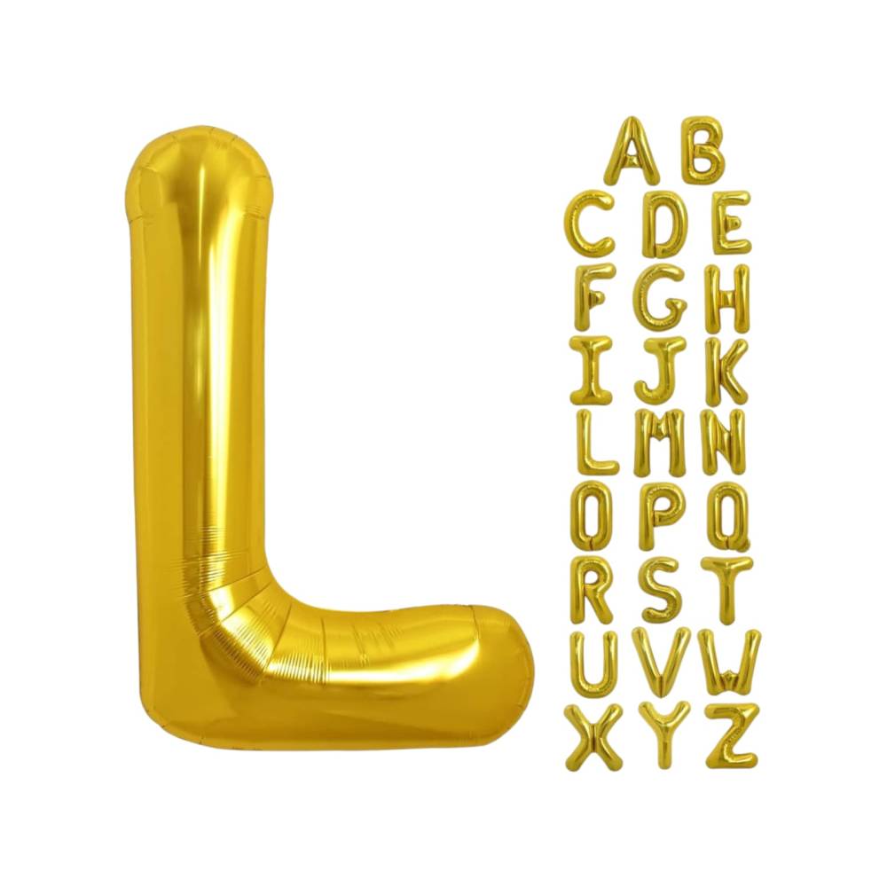 Balon din folie metalizata, tip litera, 80 cm, umflare aer sau heliu, pai inclus, Auriu