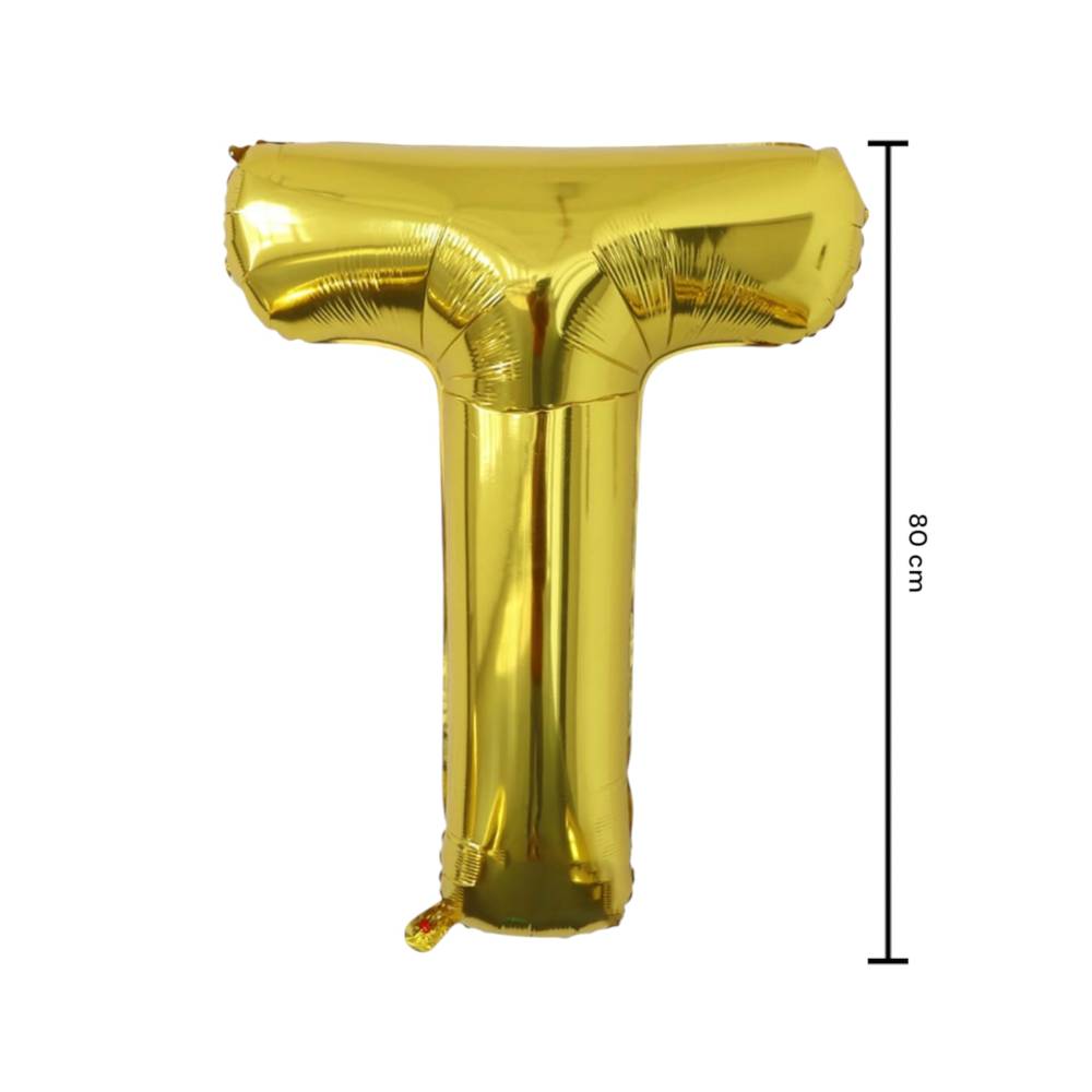 Balon din folie metalizata, tip litera, 80 cm, umflare aer sau heliu, pai inclus, Auriu