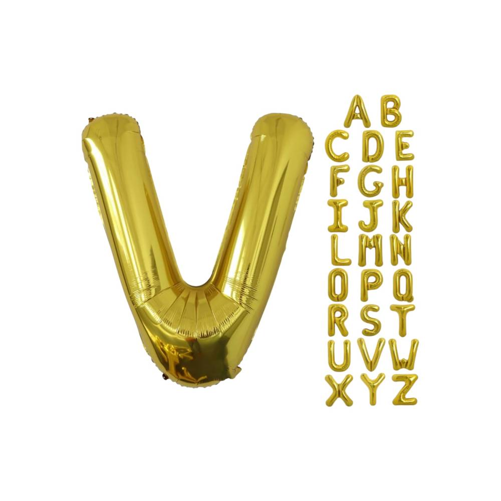 Balon din folie metalizata, tip litera, 80 cm, umflare aer sau heliu, pai inclus, Auriu
