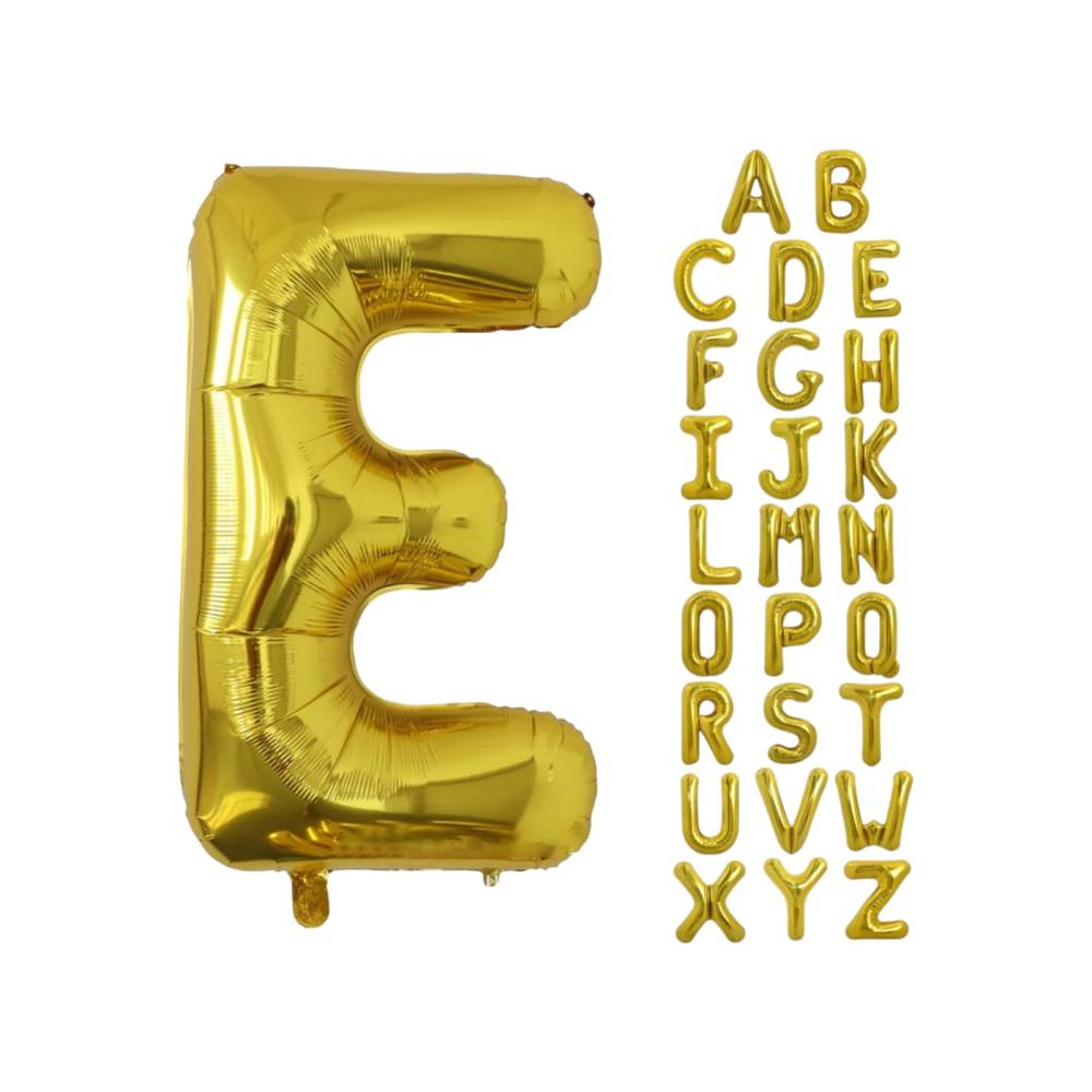 Balon din folie metalizata, tip litera, 80 cm, umflare aer sau heliu, pai inclus, Auriu