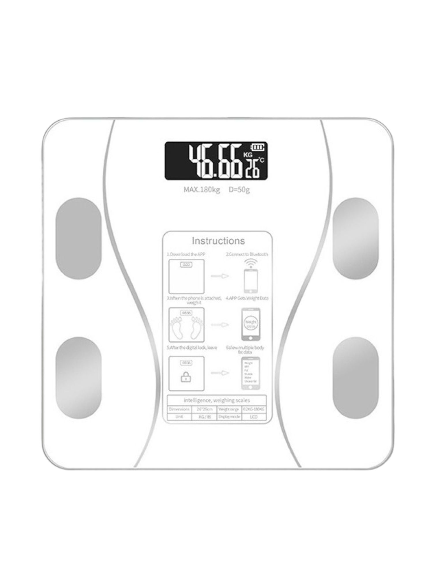 Cantar electronic de baie cu aplicatie smart, Alb, 26x26cm