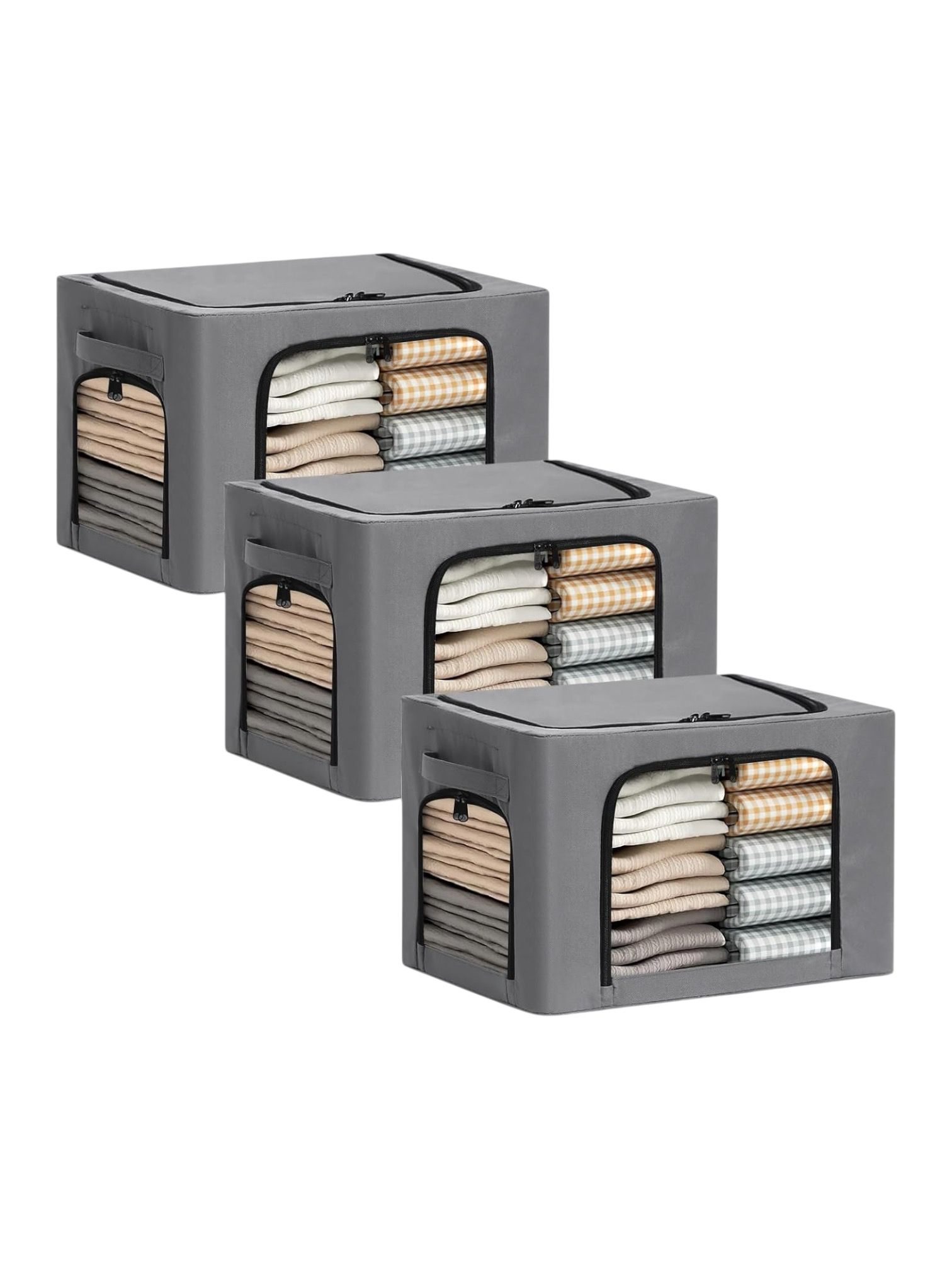 Cutie depozitare pliabila 38L Gri inchis, 3 ferestre