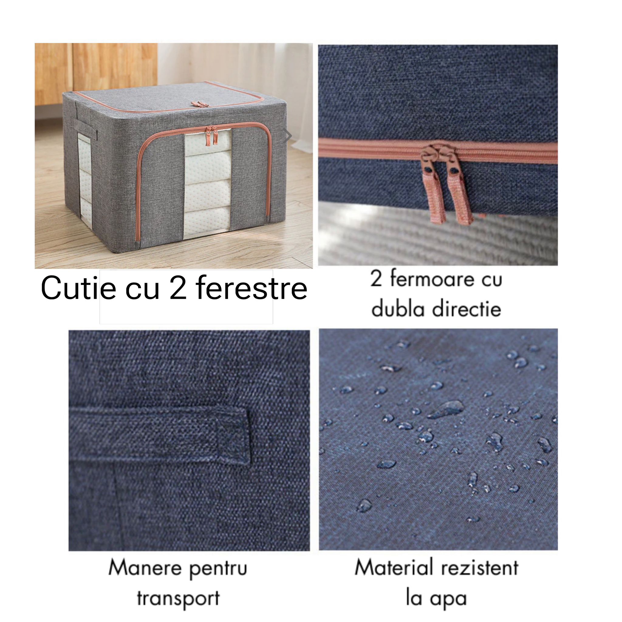 Cutie depozitare pliabila Bleumarin 66L, doua ferestre