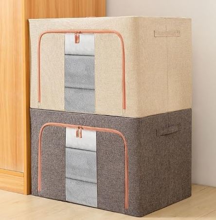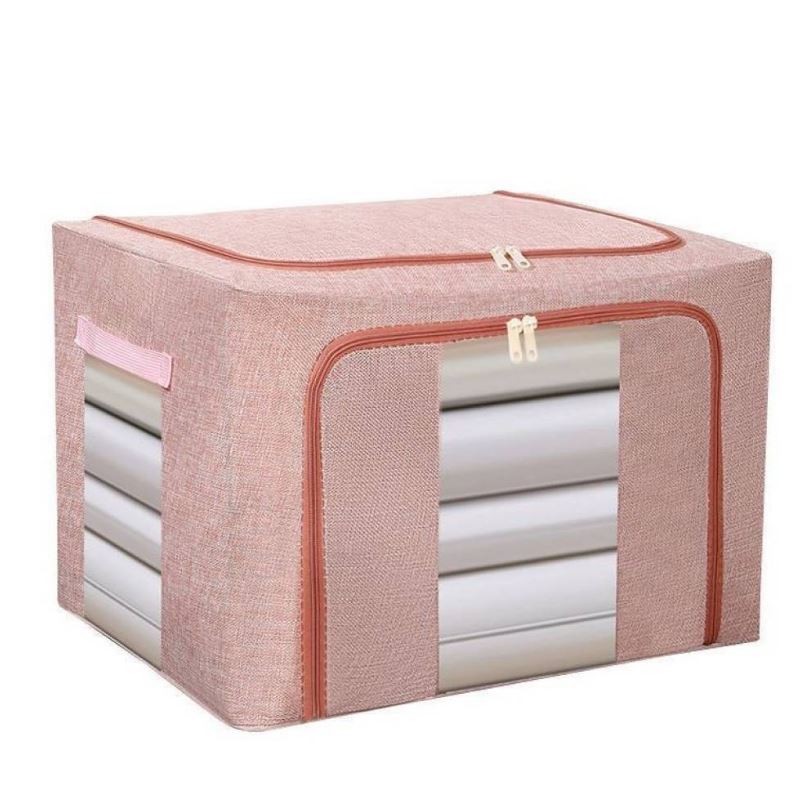 Cutie depozitare pliabila Roz pudra 66L, doua ferestre