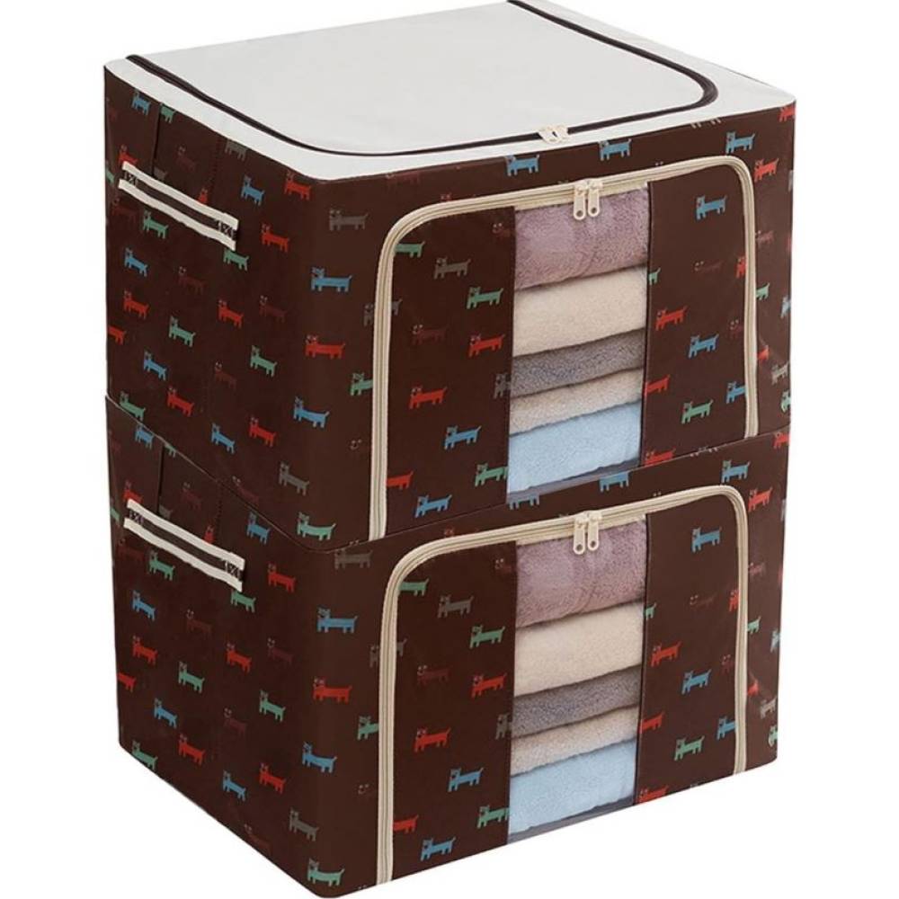 Cutie depozitare pliabila maro imprimeu catelusi, 100L