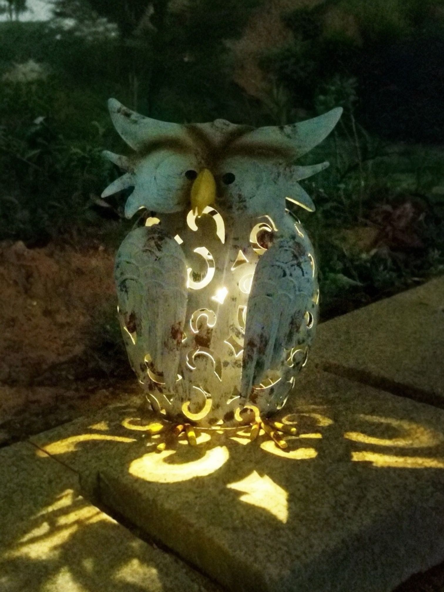 Decoratiune de gradina din fier cu lampa solara, Bufnita