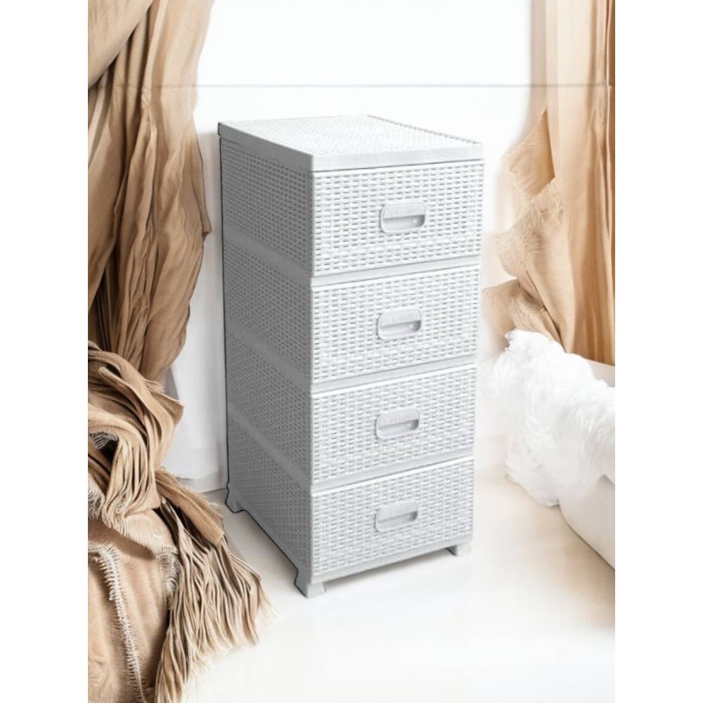 Dulap plastic 4 sertare imitatie ratan Alb 47x38x92cm
