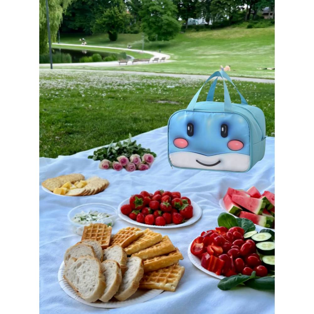 Geanta Frigorifica pentru copii, cu Desene Animate 3D, 27.5x18x20 cm, Model Balena, Albastru
