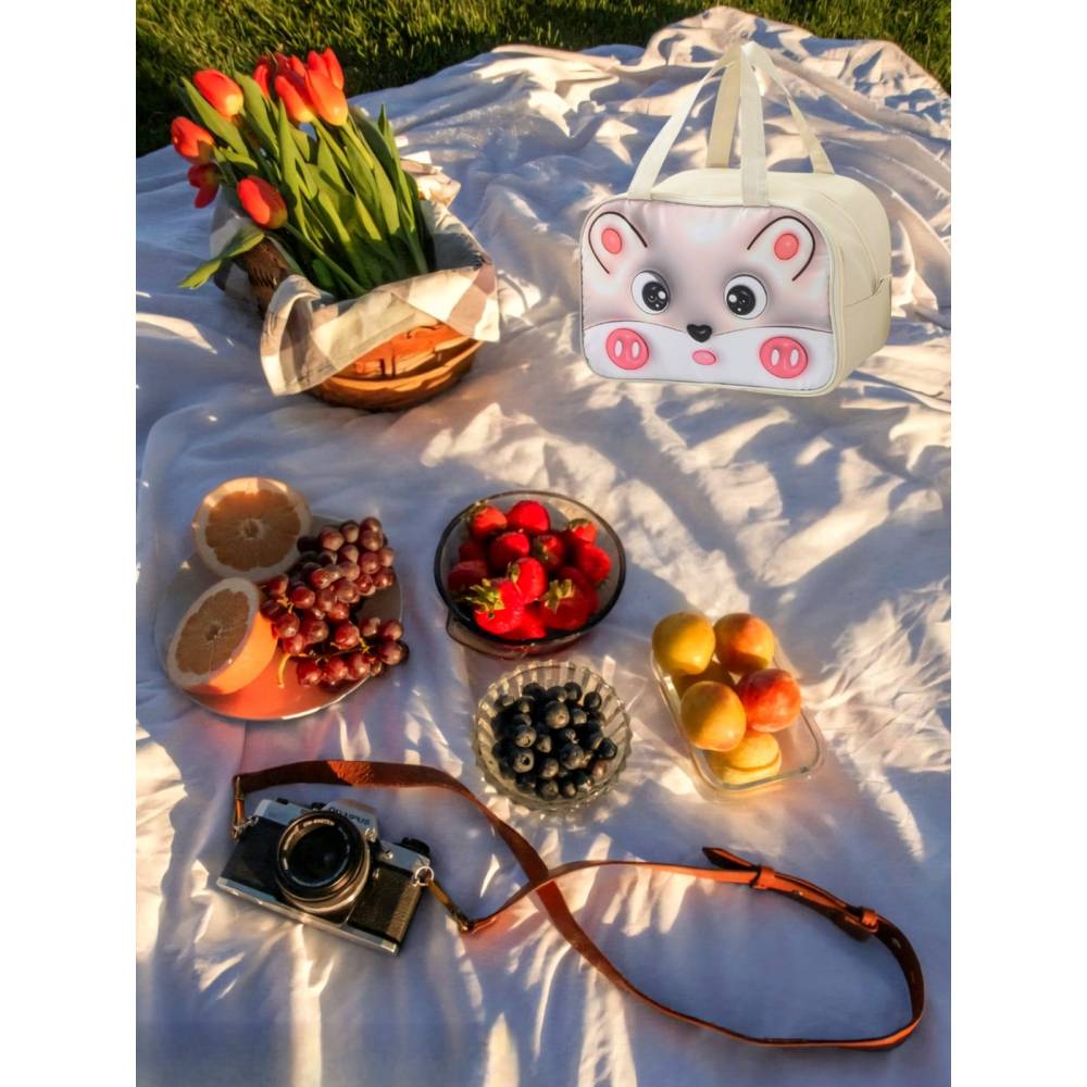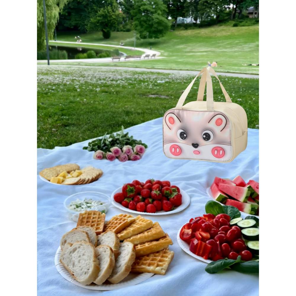Geanta Frigorifica pentru copii, cu Desene Animate 3D, 27.5x18x20 cm, Model Soricel, Bej