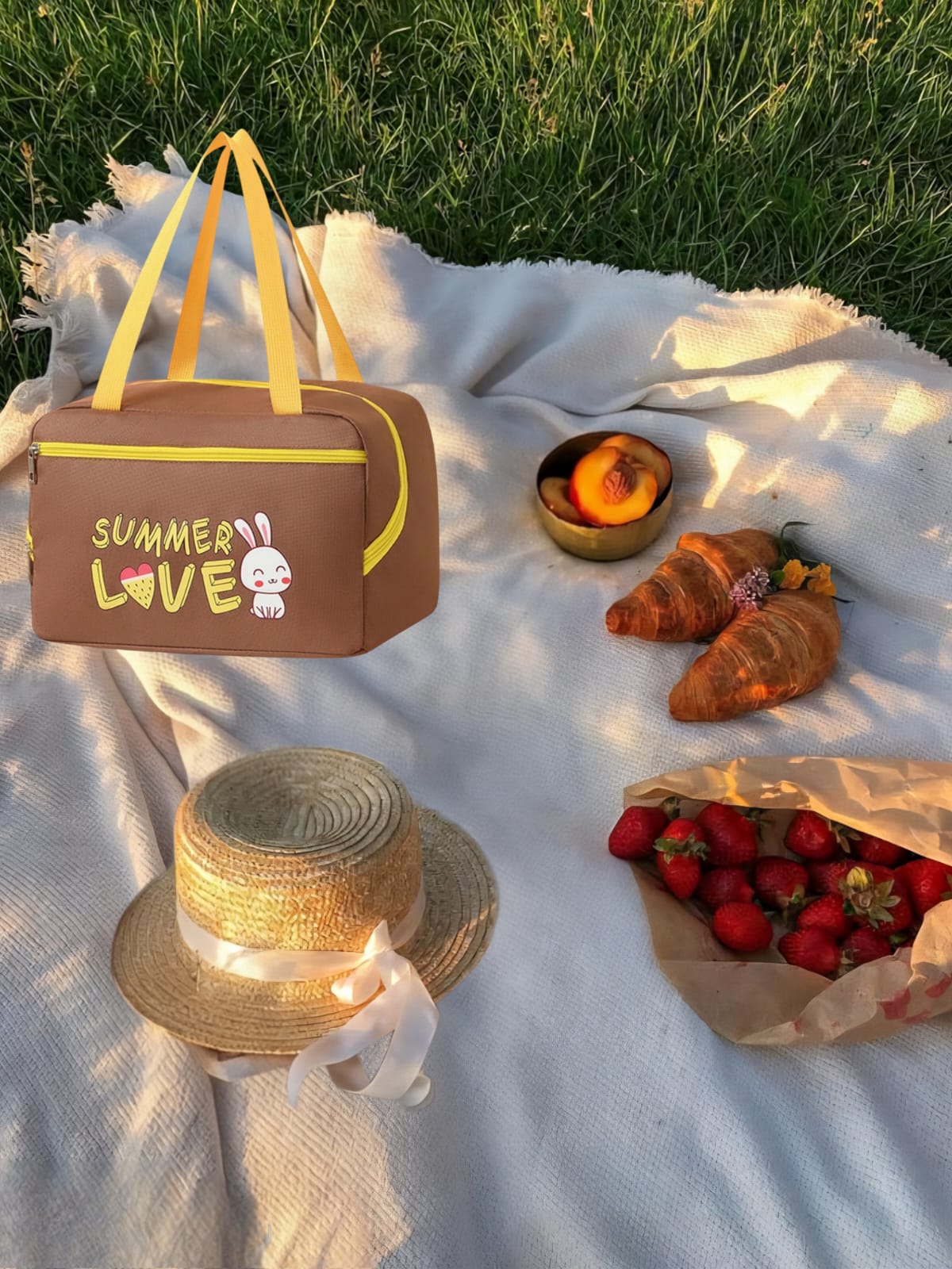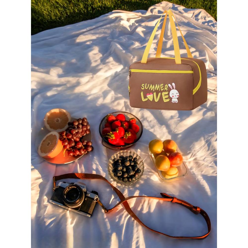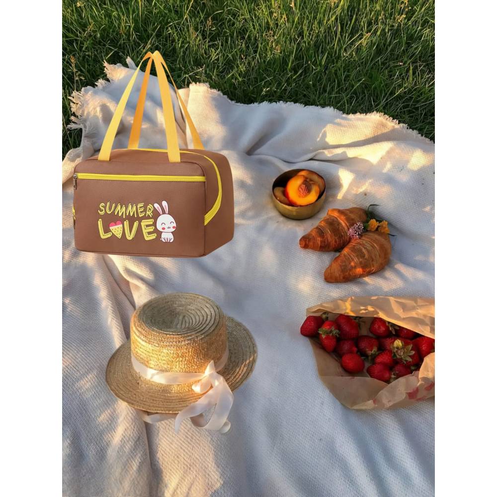 Geanta Termica, Compartimente Multiple, Impermeabila, 30x21x20 cm, Design Iepuras, Maro