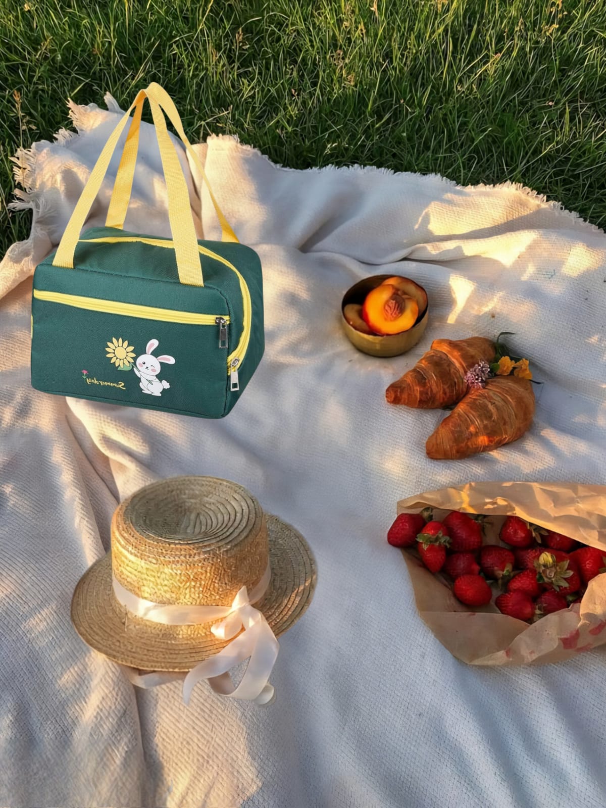 Geanta Termica, Compartimente Multiple, Impermeabila, 30x21x20 cm, Design Iepuras, Verde