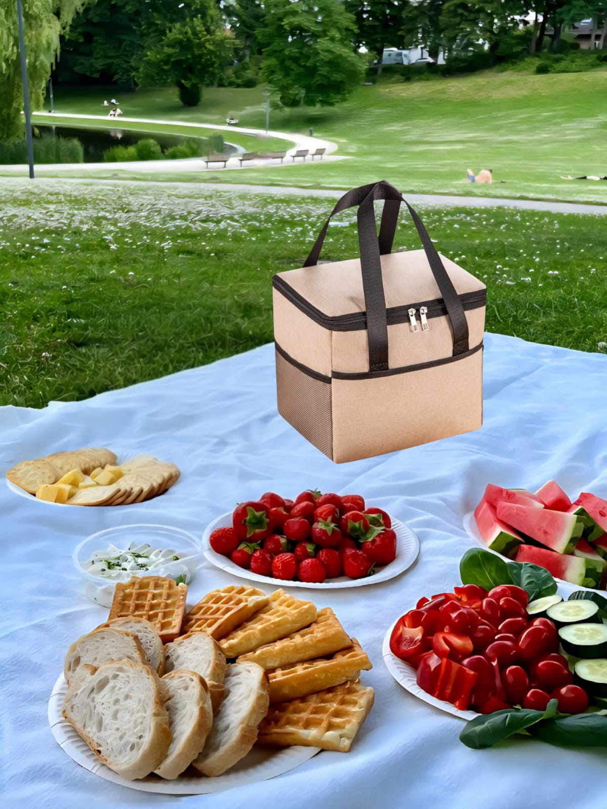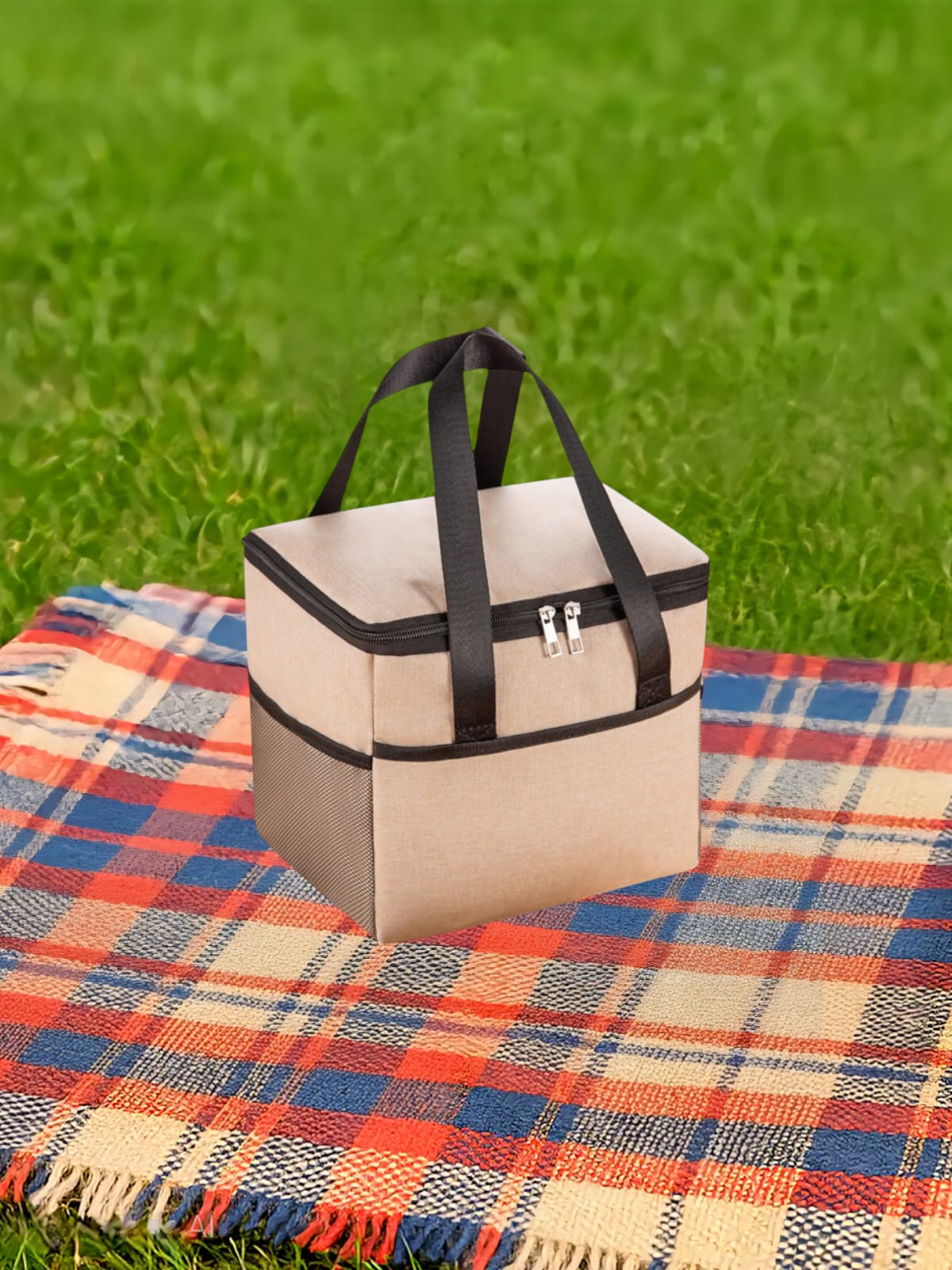 Geanta Termica pentru Pranz, Compartimente Multiple, Impermeabila, 24x18x21 cm, Crem