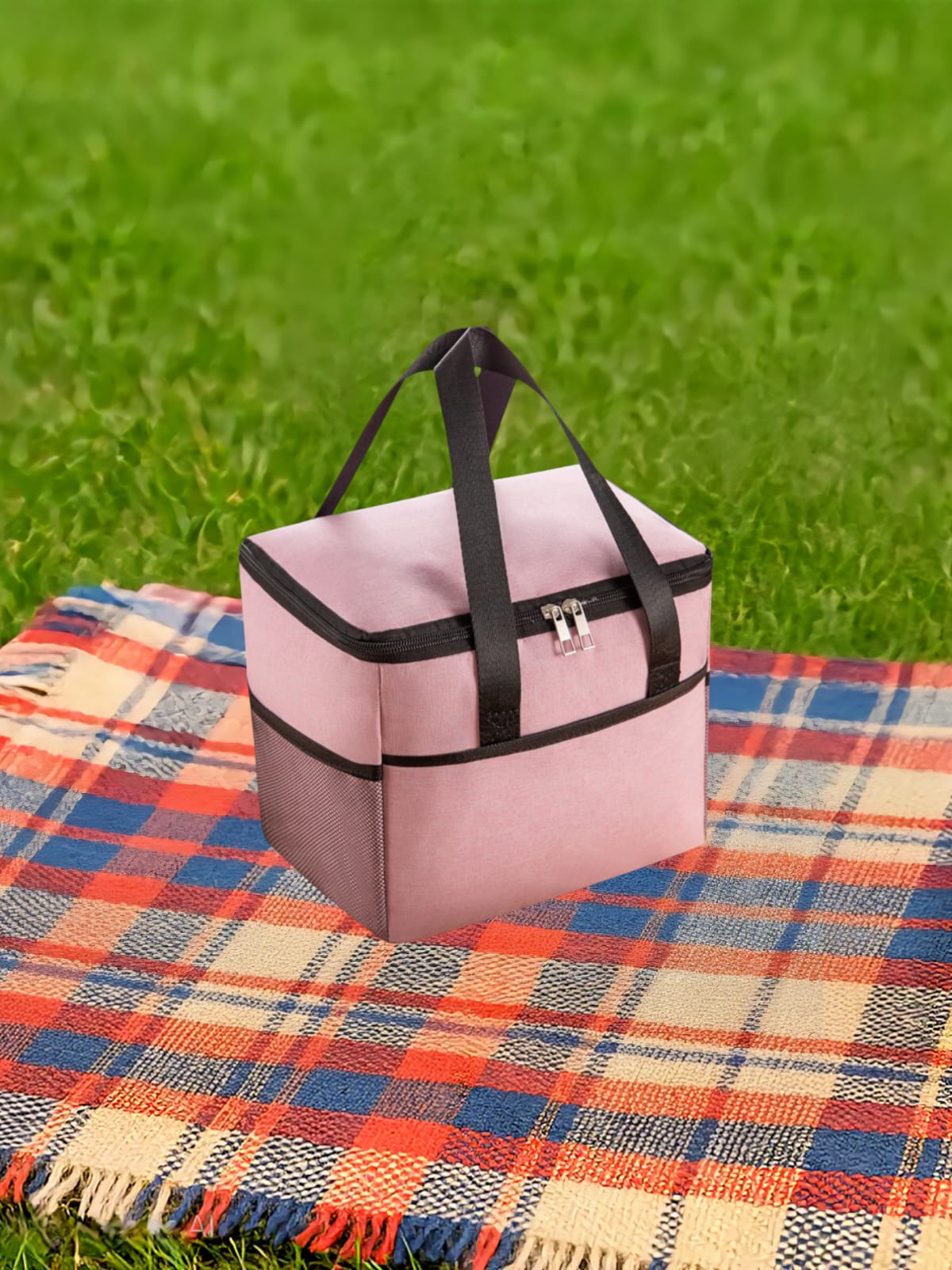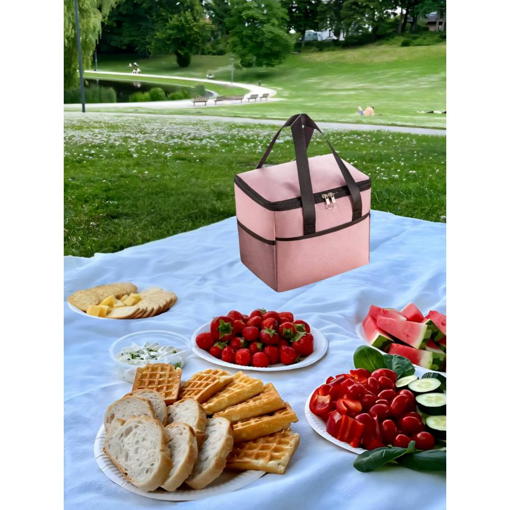 Geanta Termica pentru Pranz, Compartimente Multiple, Impermeabila, 24x18x21 cm, Roz