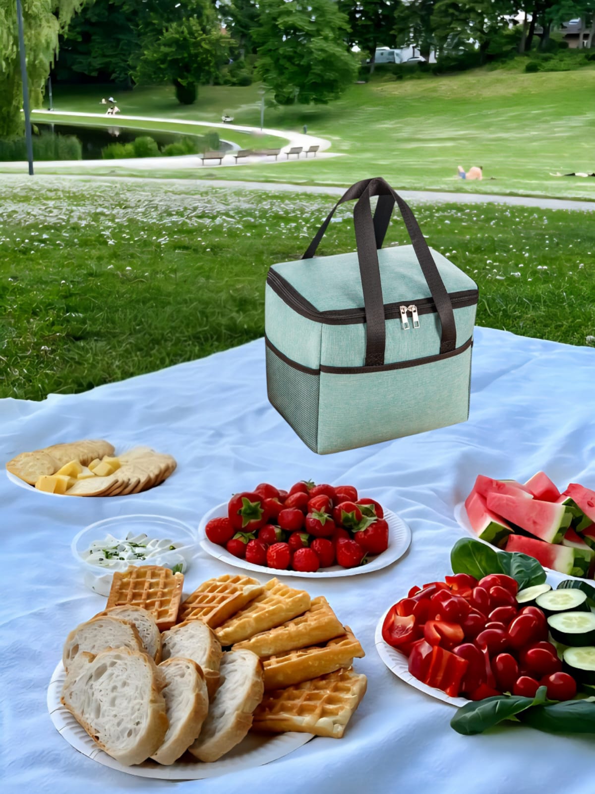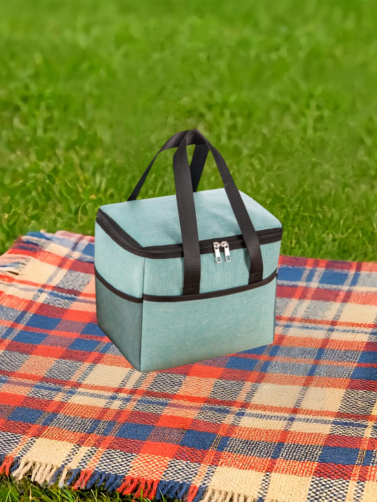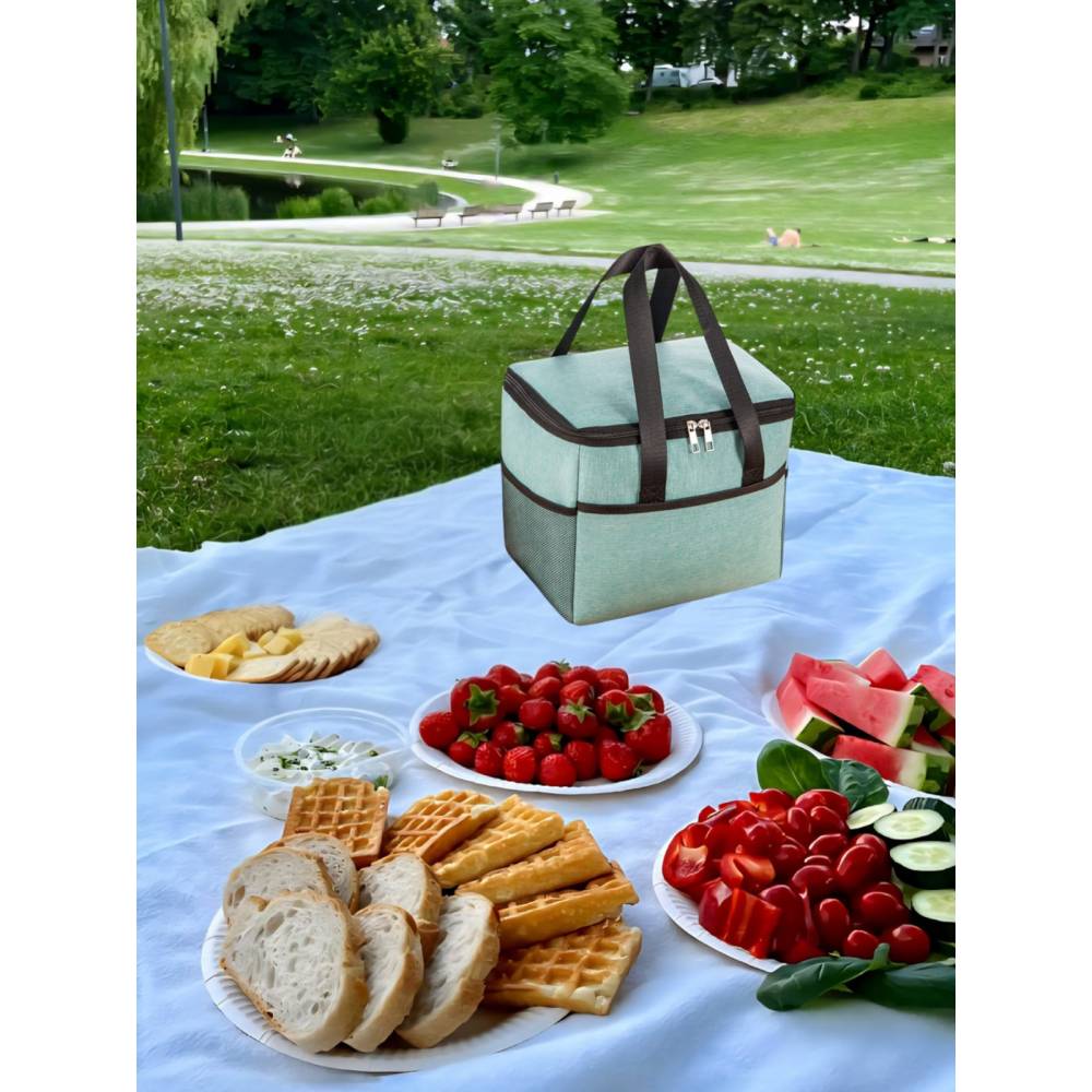 Geanta Termica pentru Pranz, Compartimente Multiple, Impermeabila, 24x18x21 cm, Verde