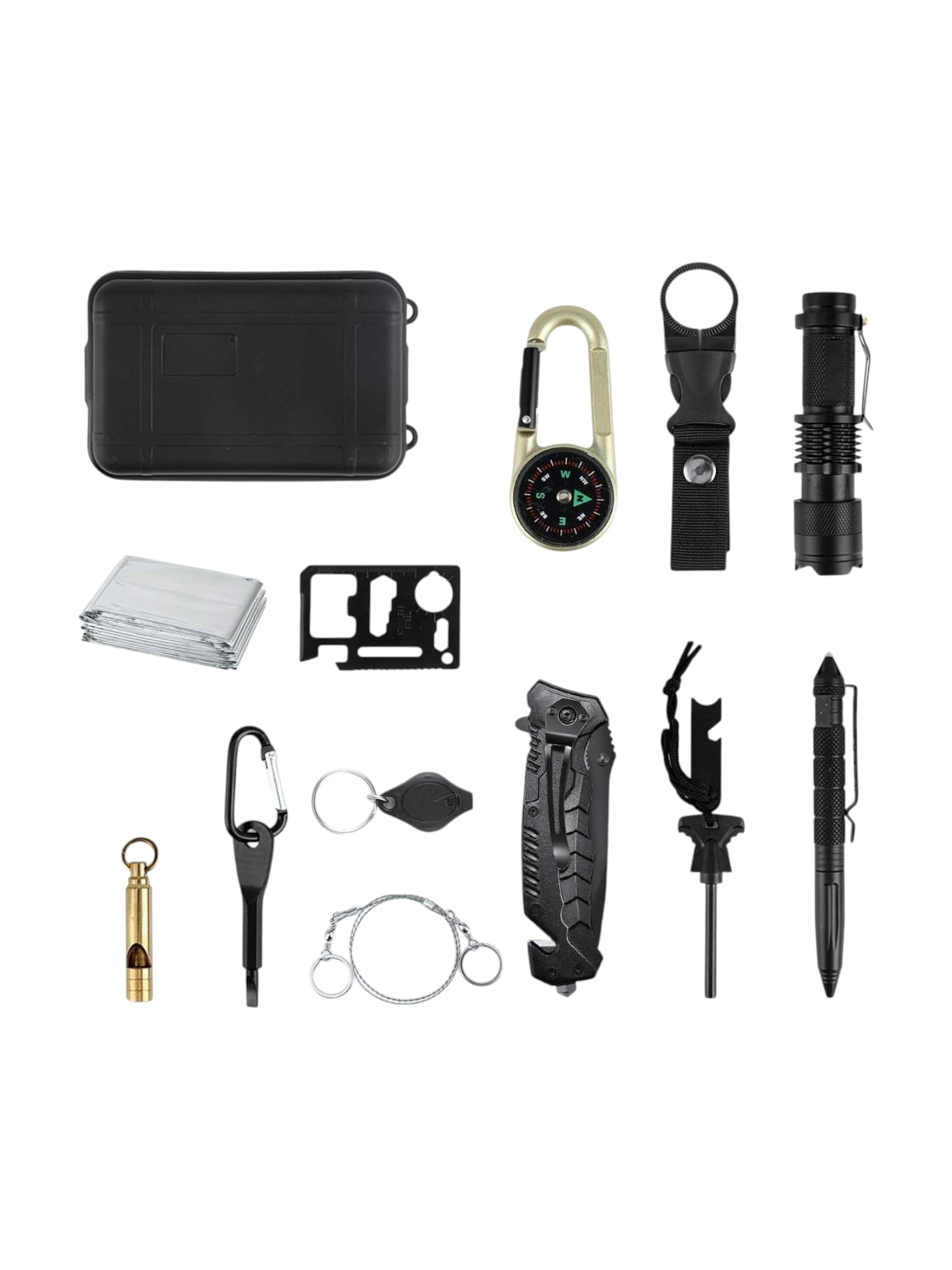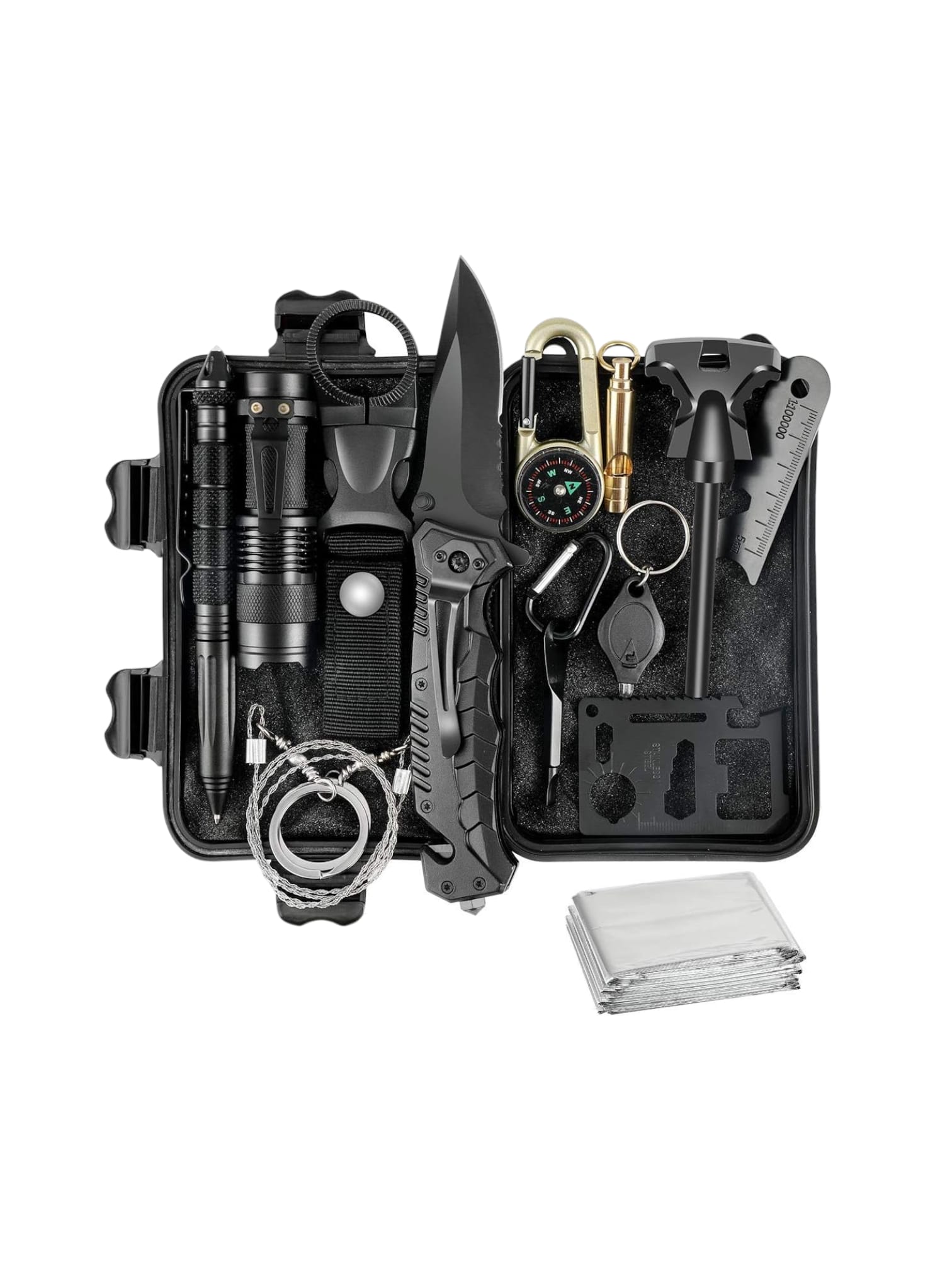 Kit Supravietuire 19 in 1 pentru Camping si Drumetii, Instrumente Profesionale, Negru