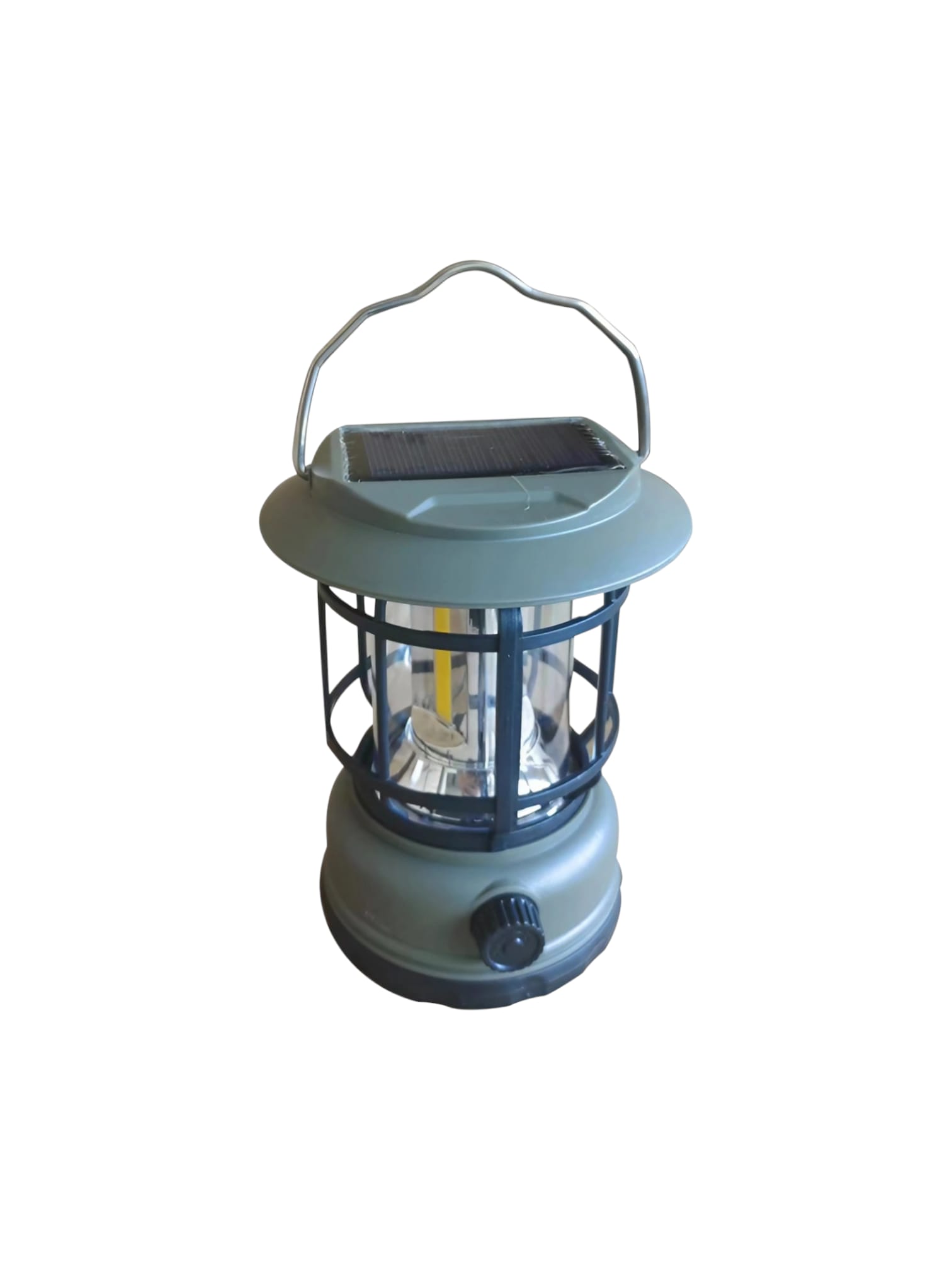 Lampa Portabila Camping Vintage, Intensitate Reglabila, Incarcare Solara si USB, Verde