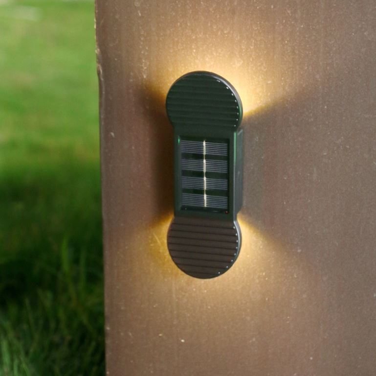Lampa solara LED pentru perete, scari negru, Alb cald