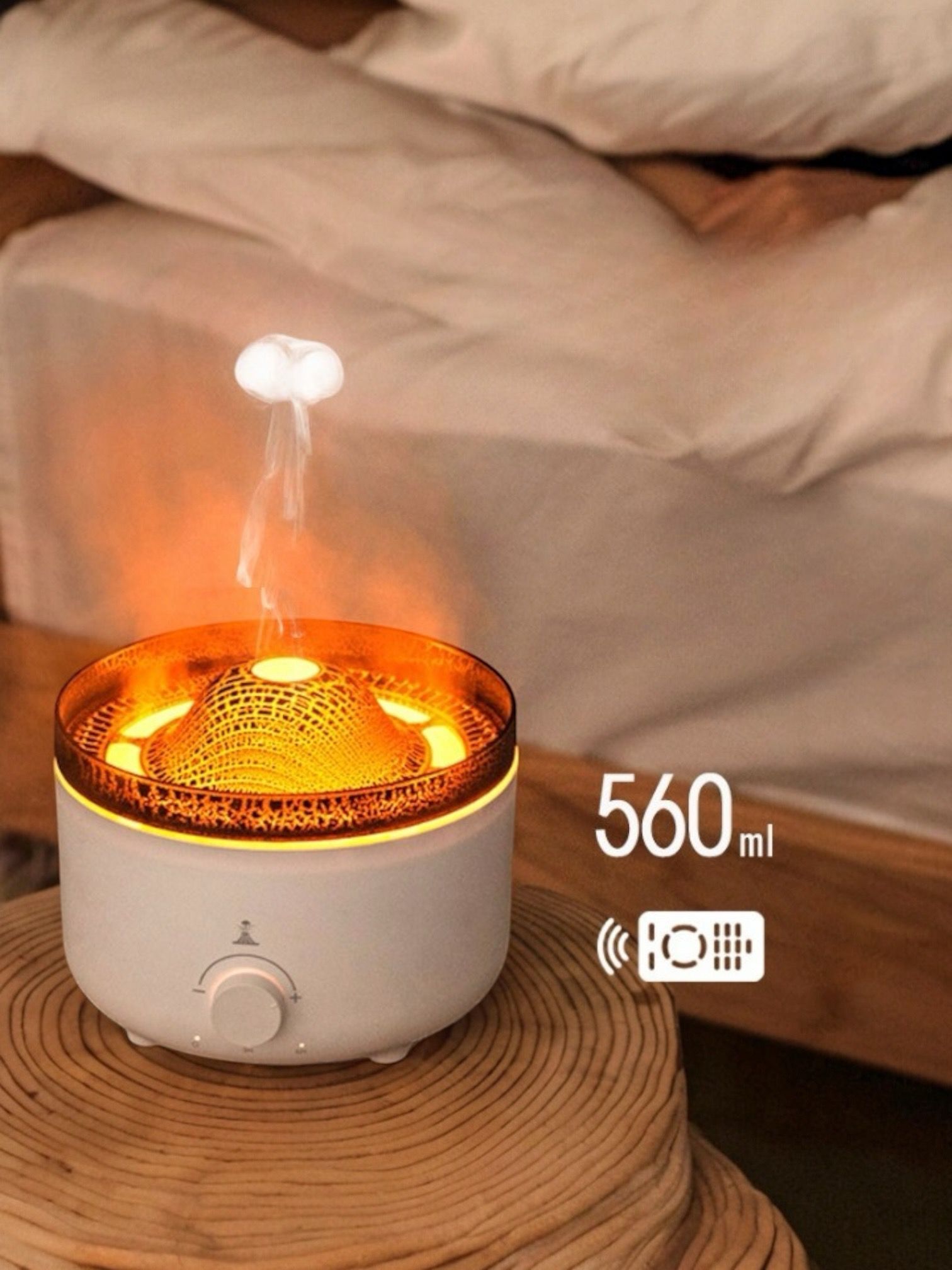 Umidificator cu aromaterapie efect vulcan Model V21A, 560ml, Alb