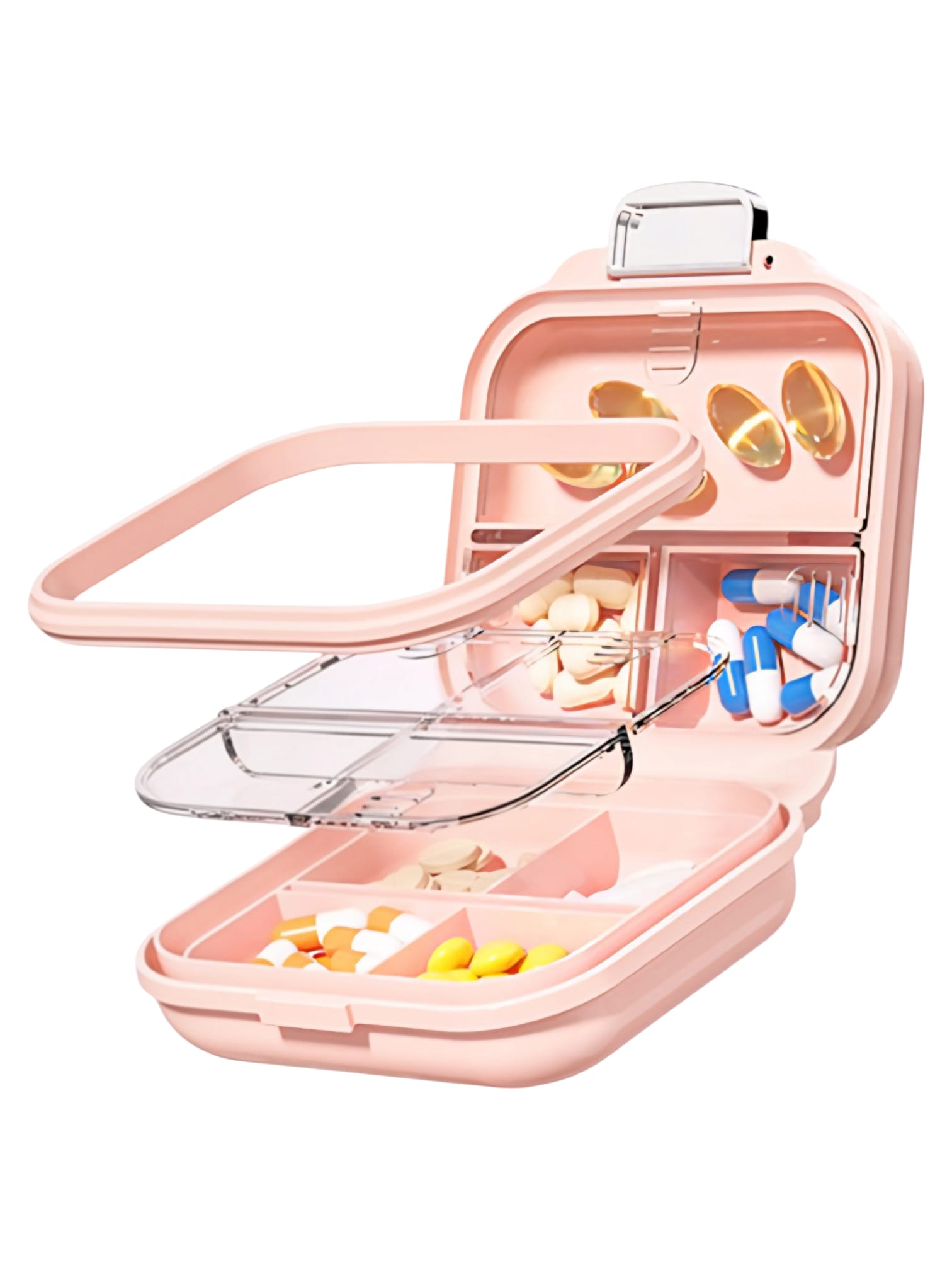 Cutie de depozitare pentru medicamente, din PP, 7 compartimente, Roz
