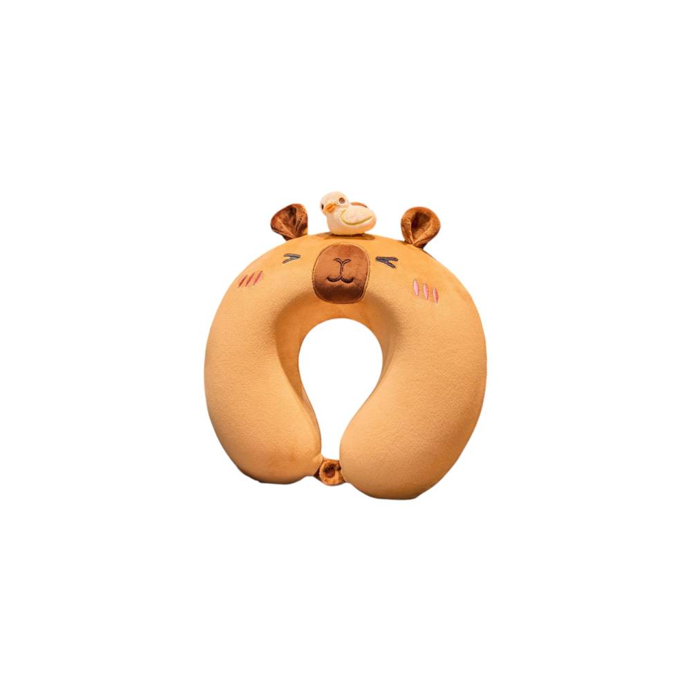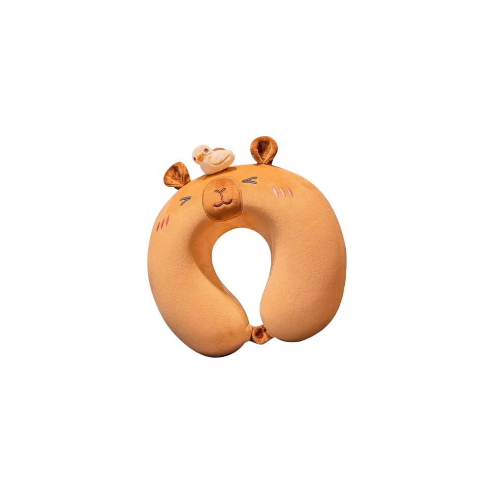 Perna de Calatorie pentru Gat si Cap, Umplutura din Spuma cu Memorie, Model Capybara, Maro