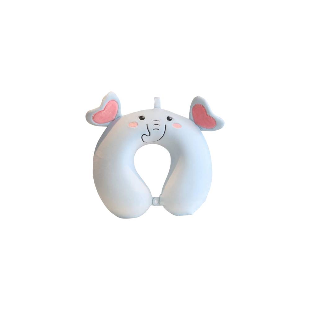 Perna de Calatorie pentru Gat si Cap, Umplutura din Spuma cu Memorie, Model Elefant, Albastru