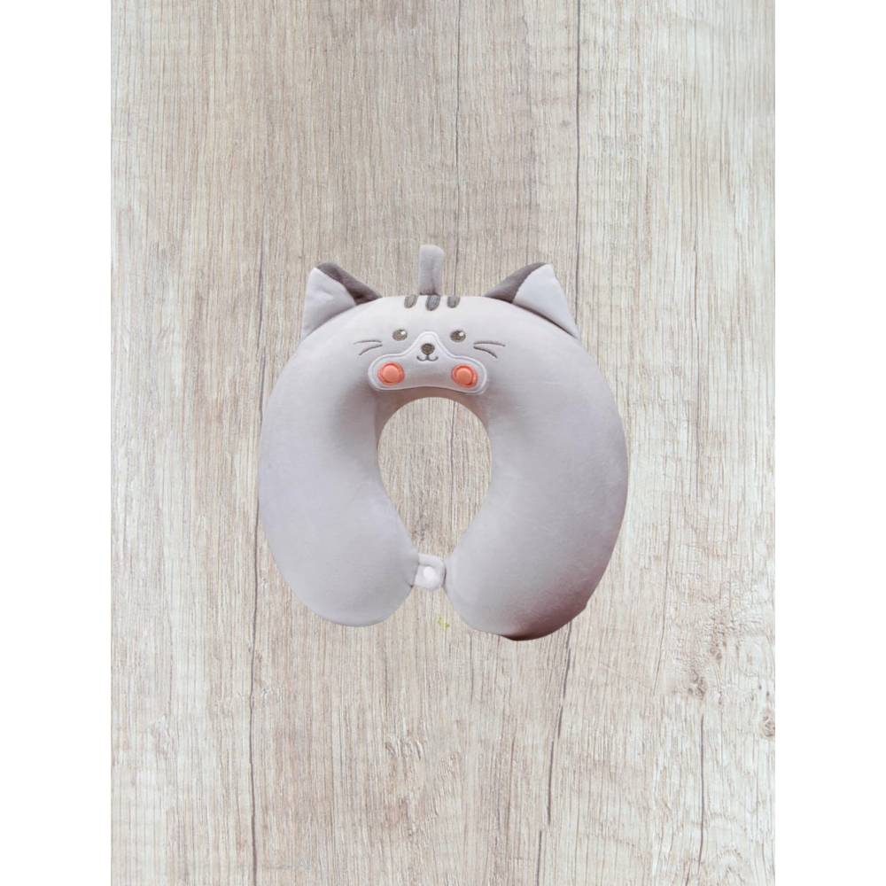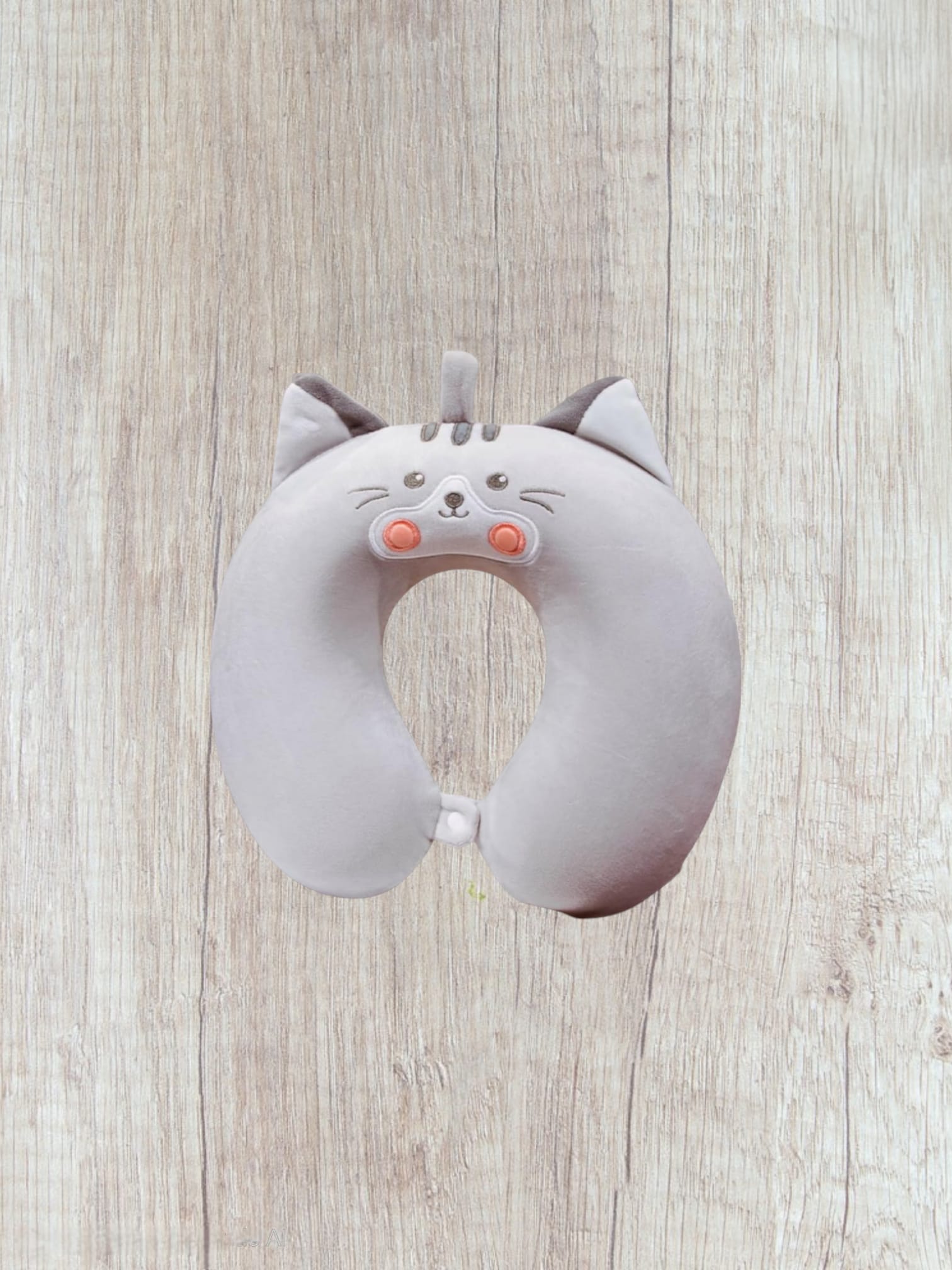 Perna de Calatorie pentru Gat si Cap, Umplutura din Spuma cu Memorie, Model Pisica, Gri