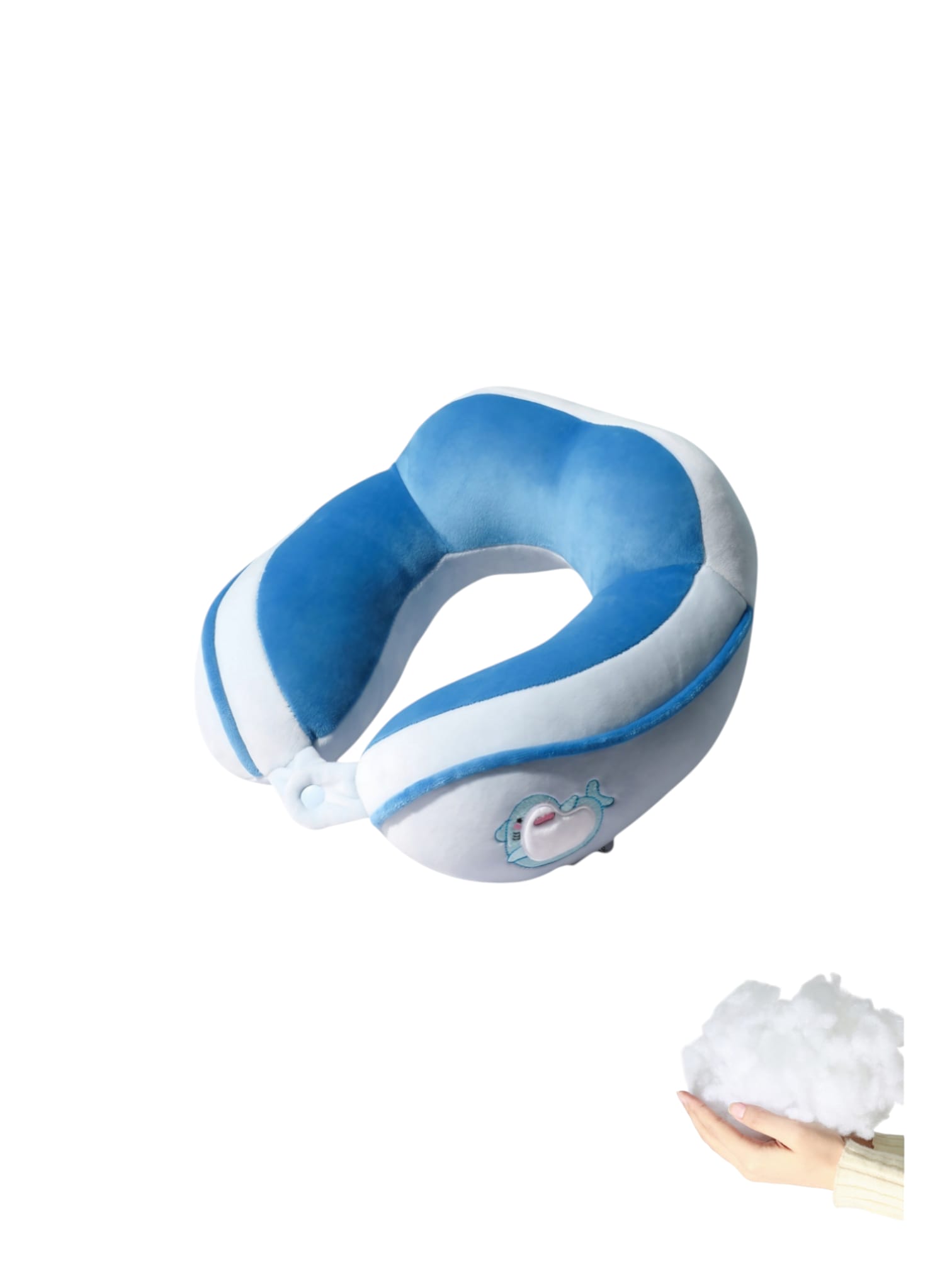 Perna de Calatorie pentru Gat, Umplutura cu Bumbac, Model Brodat Delfin, Albastru