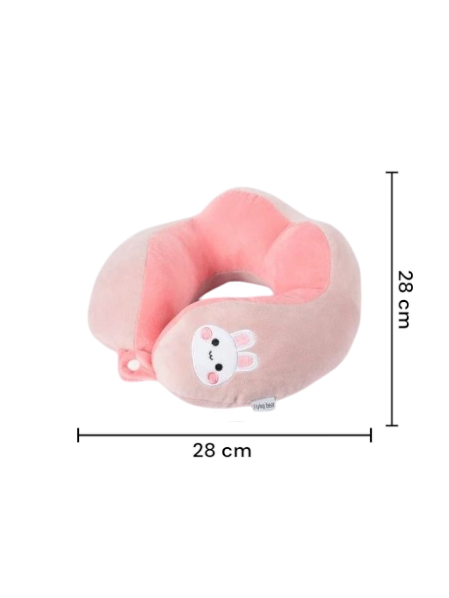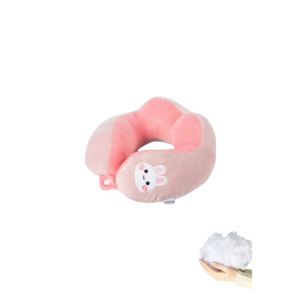 Perna de Calatorie pentru Gat, Umplutura cu Bumbac, Model Brodat Iepure, Roz