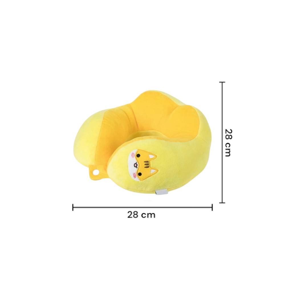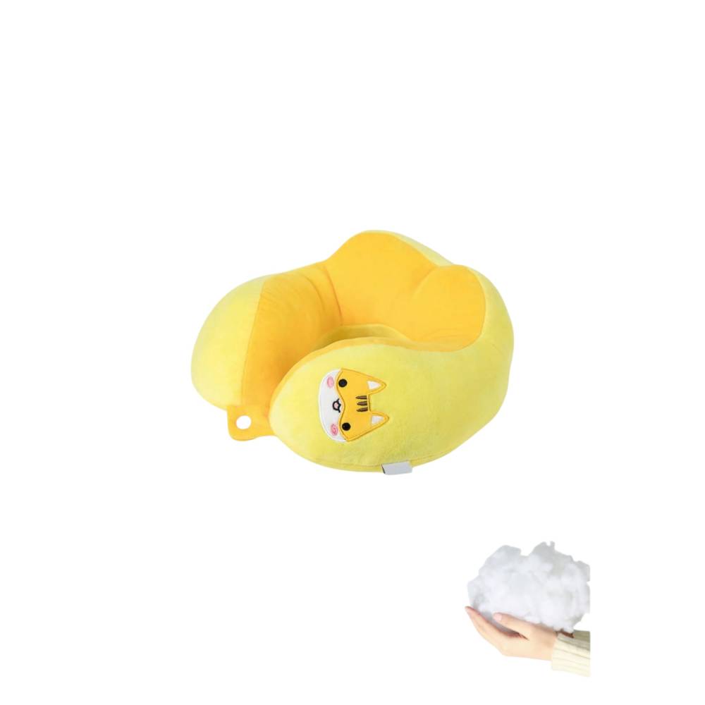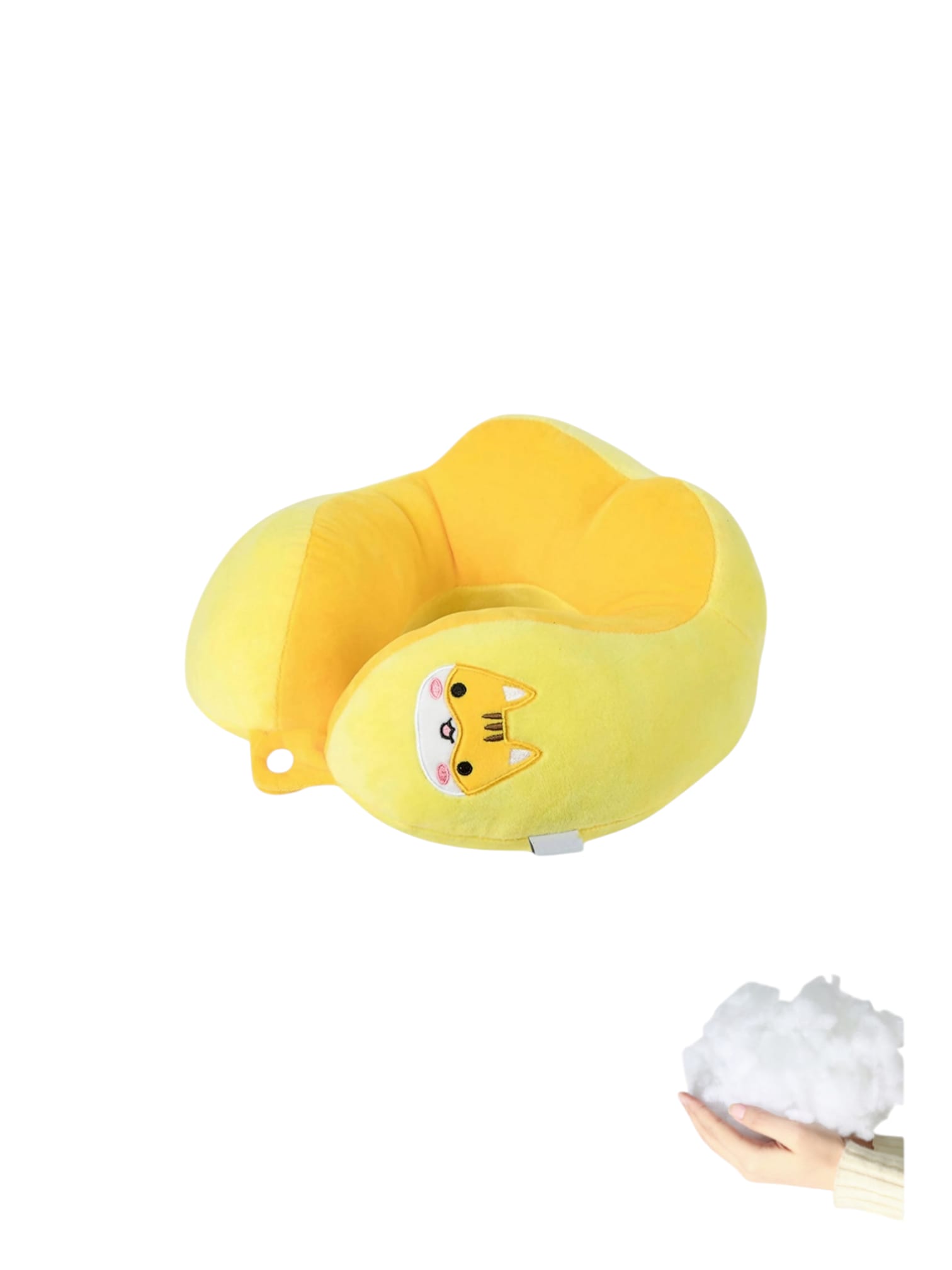 Perna de Calatorie pentru Gat, Umplutura cu Bumbac, Model Brodat Pisica, Galben