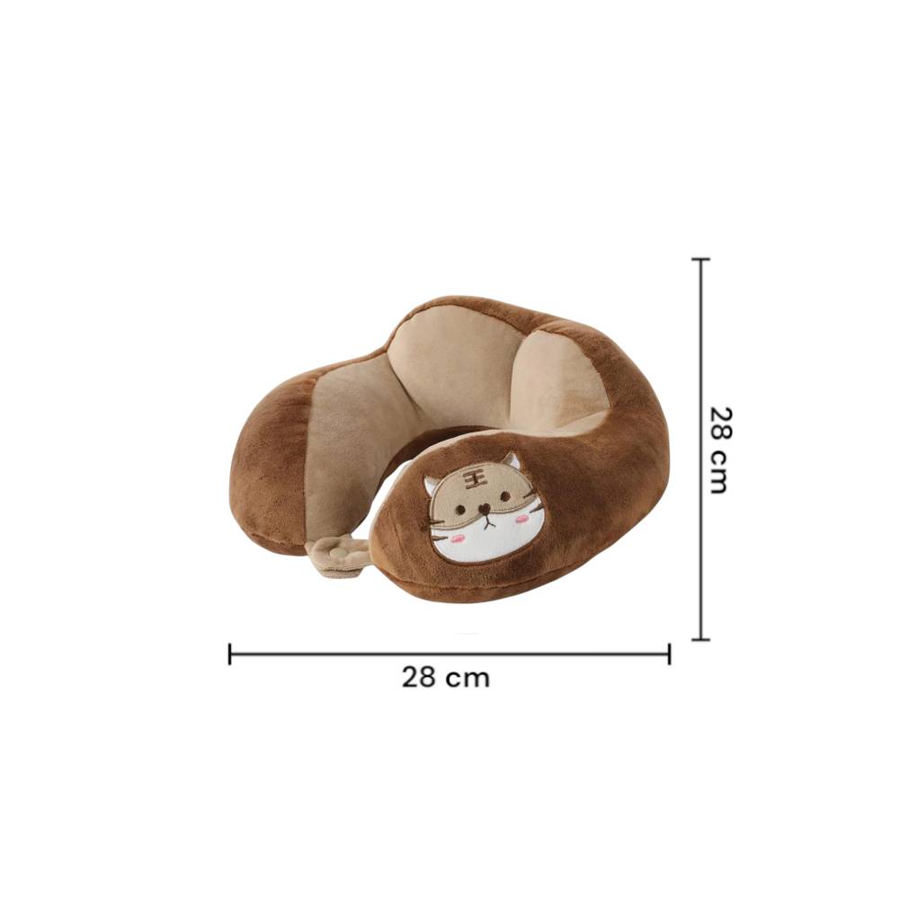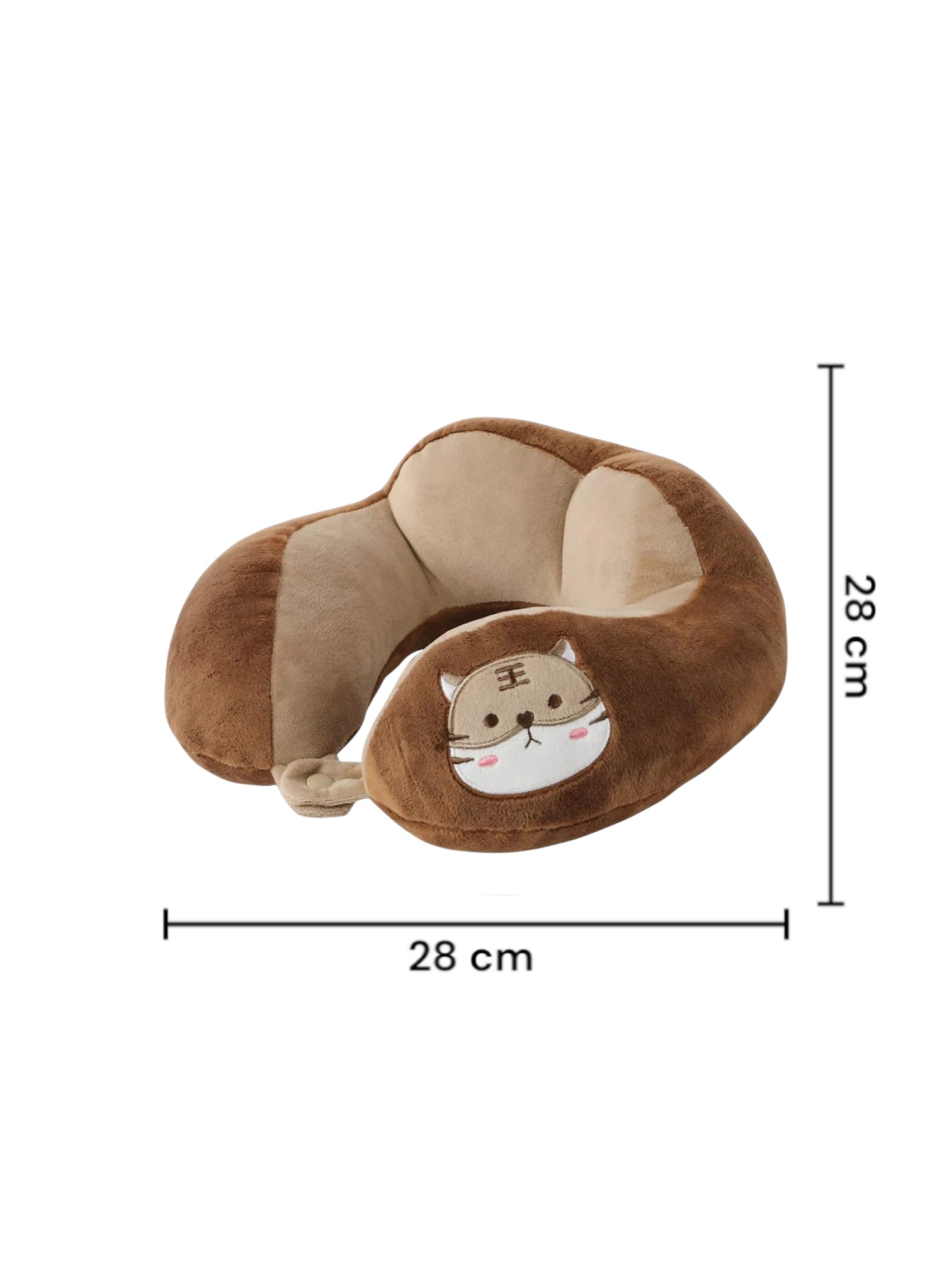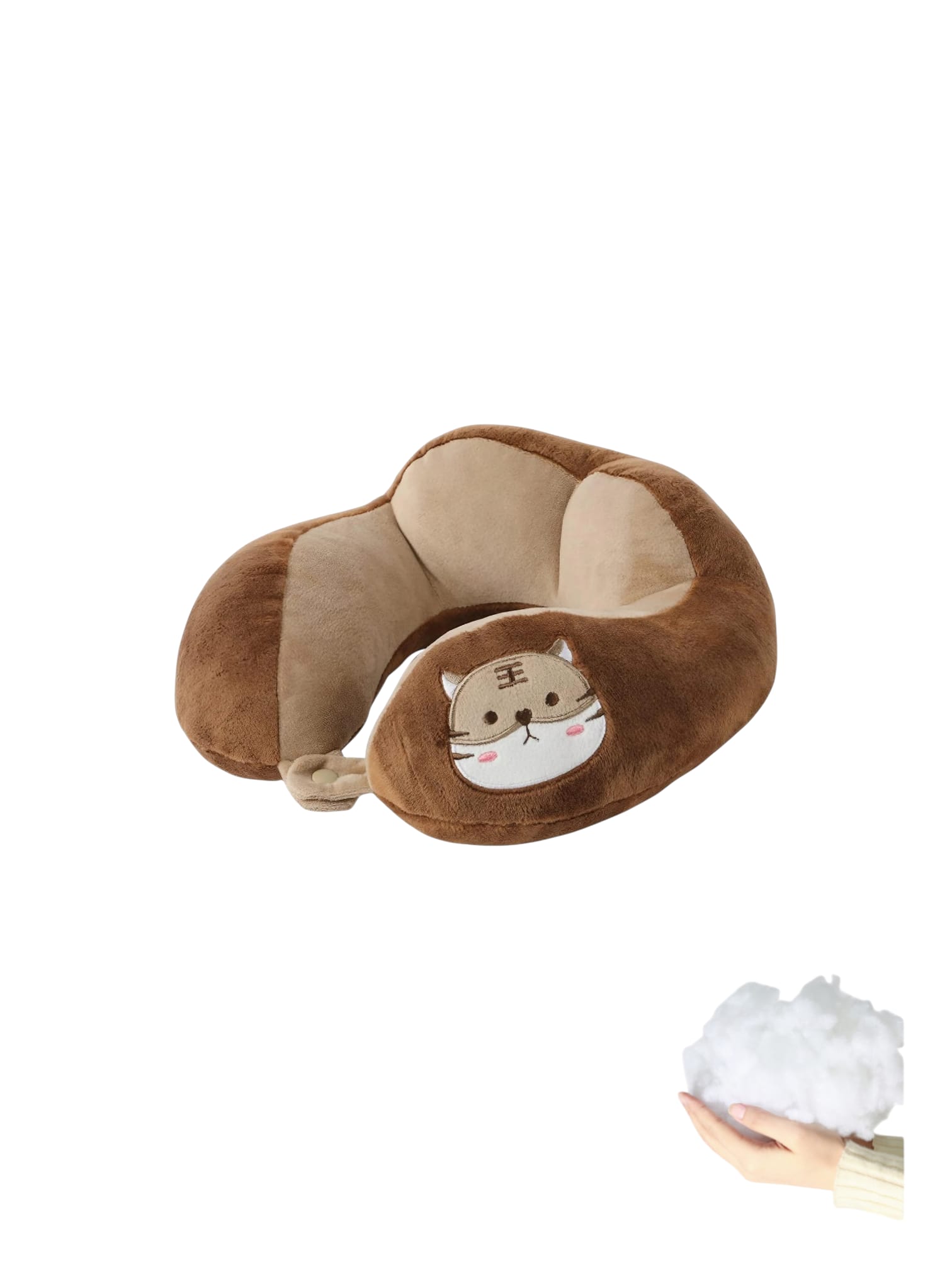 Perna de Calatorie pentru Gat, Umplutura cu Bumbac, Model Brodat Pisica, Maro
