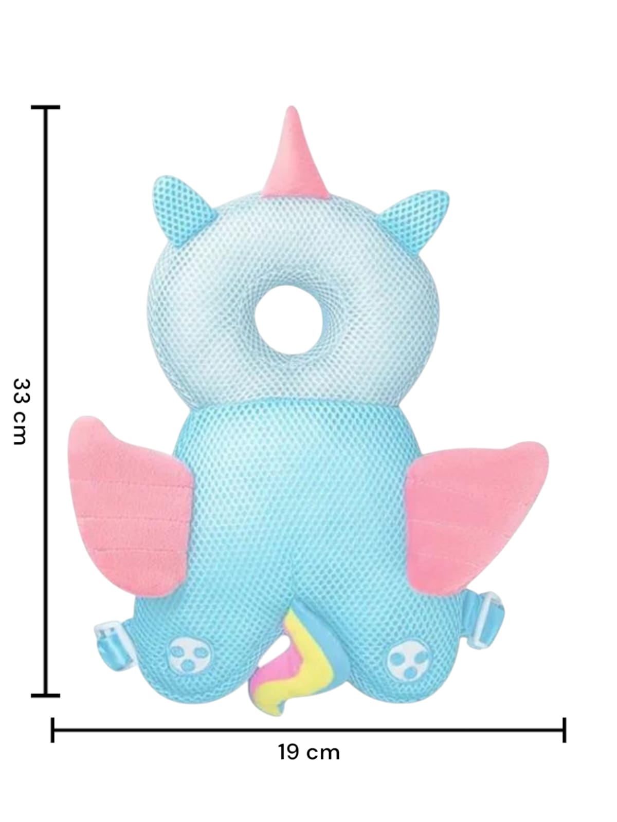 Perna Tip Rucsac pentru Protectia Capului pentru Bebelusi, Tip Unicorn, Albastru, Plasa