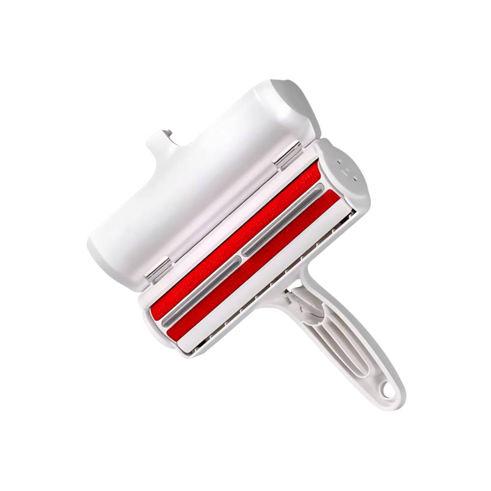 Rola pentru Parul de Animale, cu Maner, 19x19x6cm, Alb/Rosu