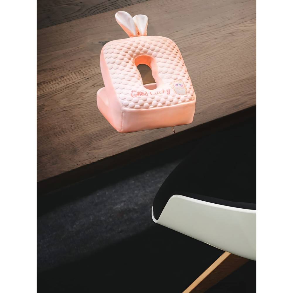 Set 2in1 Patura Microfibra si Perna cu Umplutura din Bumbac pentru Birou, Calatorii, Model Iepuras, Roz