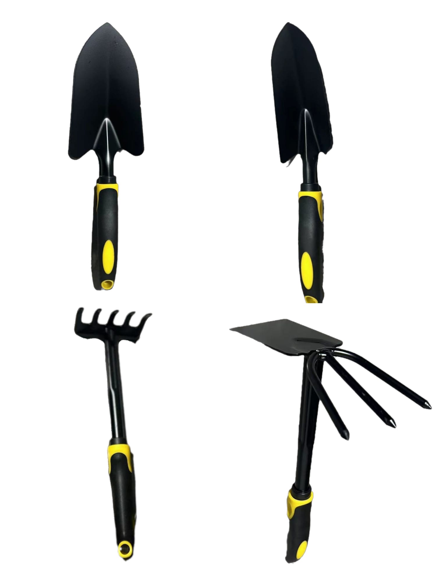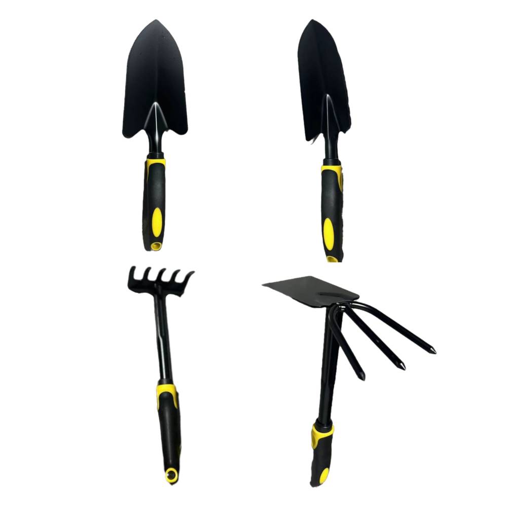 Set 4 Unelte Gradina pentru Plantare si Ingrijire, PVC Carbon, Negru/Galben