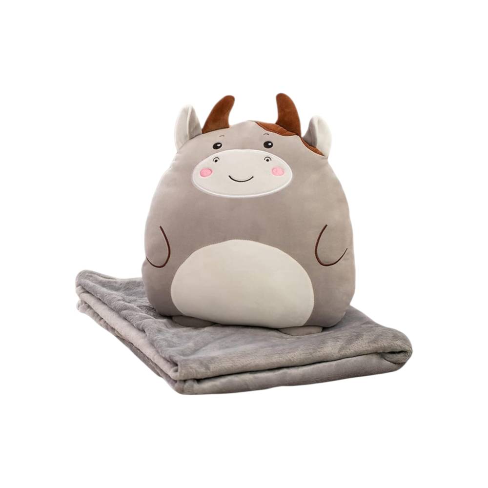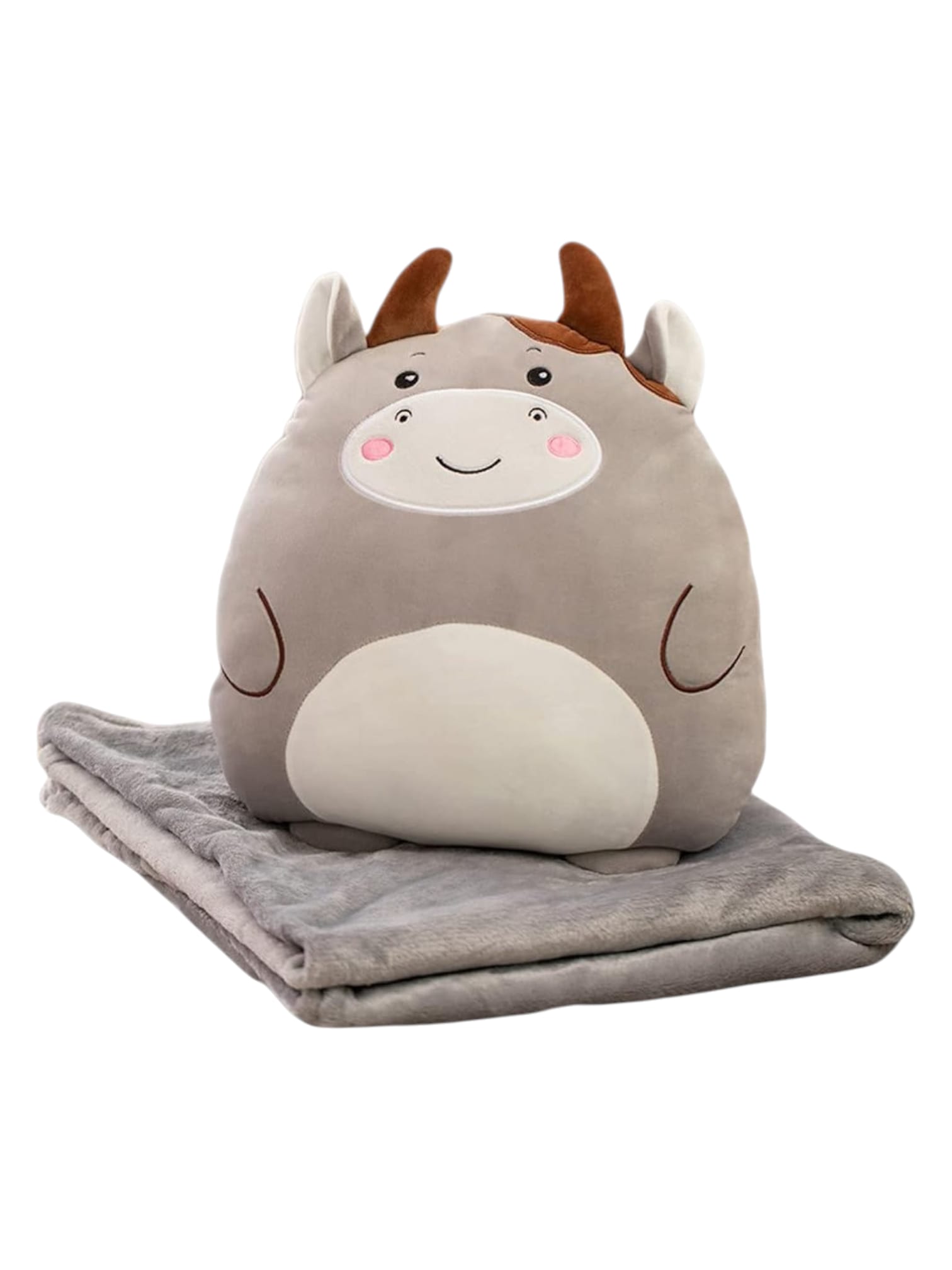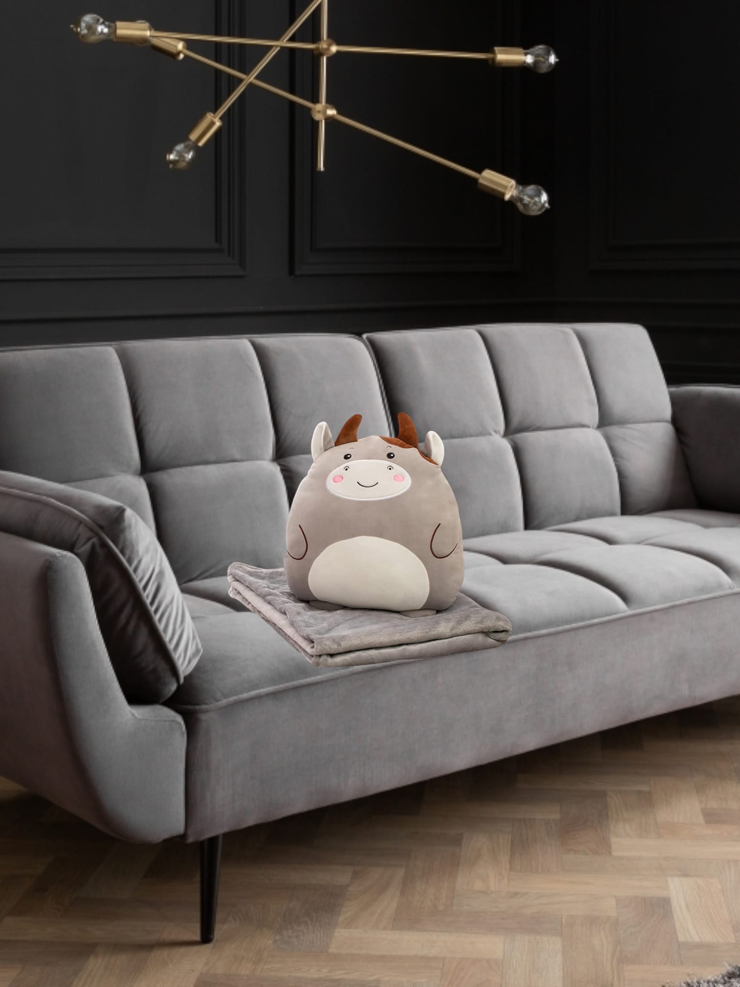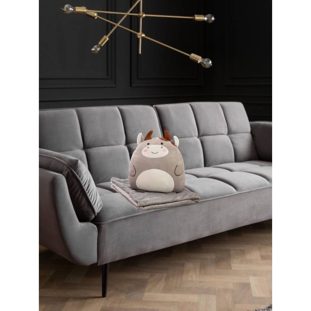 Set Patura 2 in 1 pentru Pat sau Canapea, Microfibra, Model Jucarie Vacuta, Gri