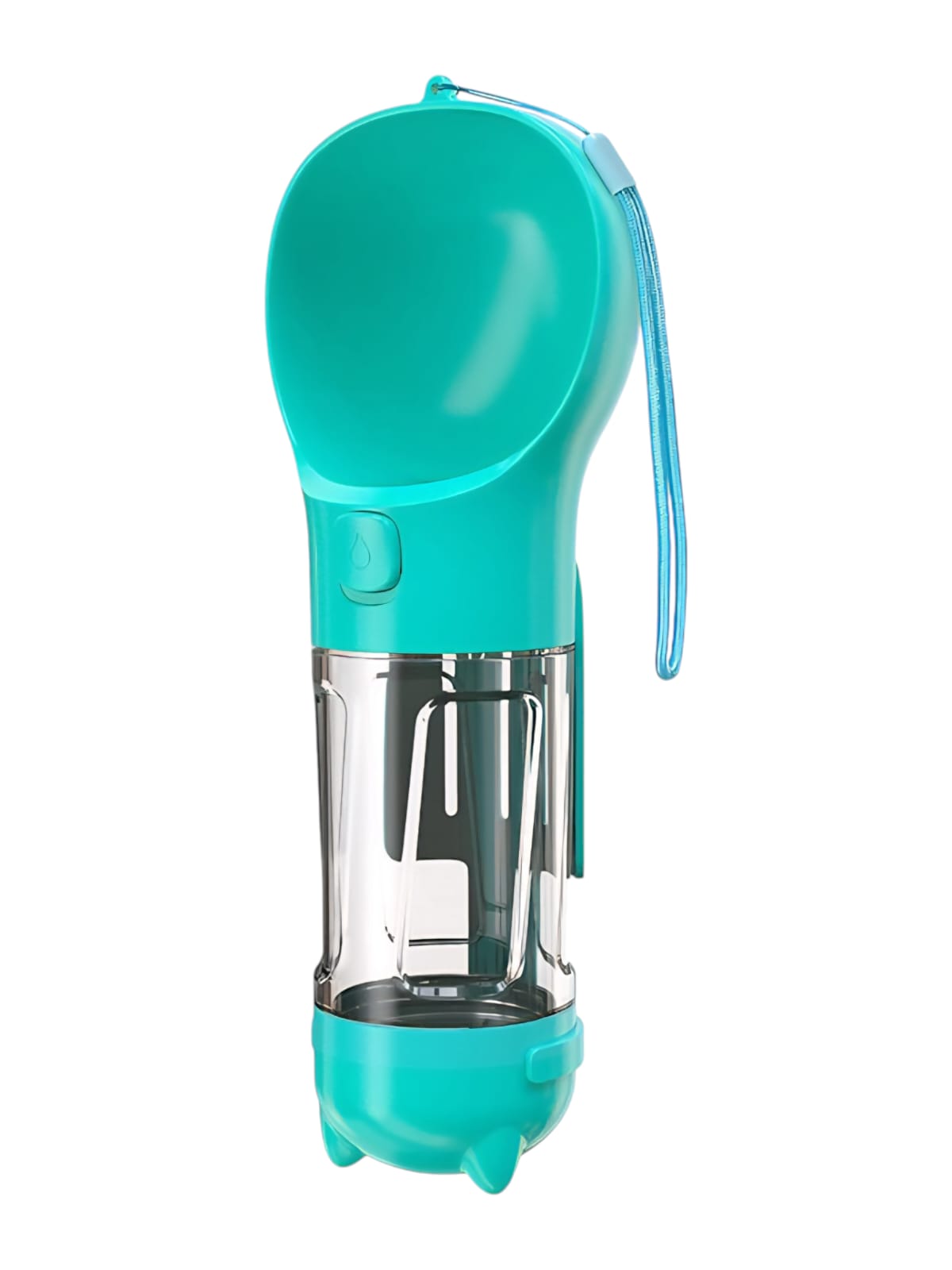 Sticla Portabila 4 in 1 pentru Caini si Pisici, 26.7 x 9.7 x 9.4 cm, Turcoaz